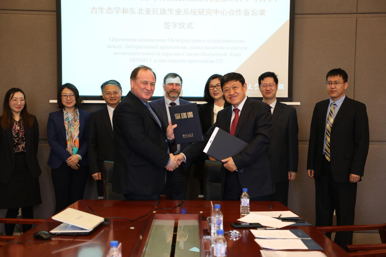 与俄罗斯伊尔库茨克国家研究型技术大学考古学、古生态学和东北亚民族生业系统研究中心合作备忘录》签字仪式
