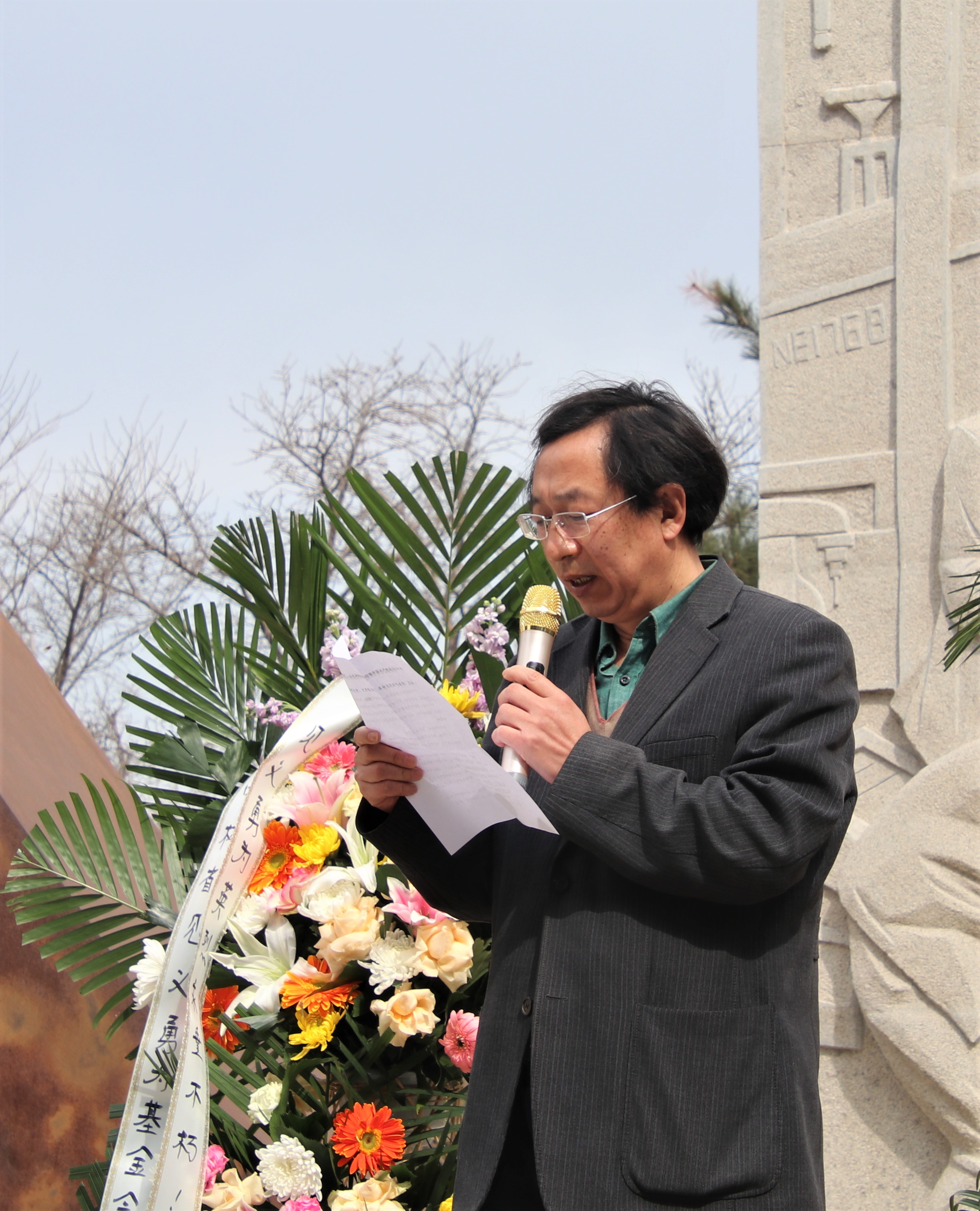 学生代表田兆鲲讲话。表示将追寻先烈的足迹,学习他们追求真理、是非分明、立场坚定的优秀品质,投身于中国特色、中国风格、中国气派的考古学建设中,为实现中华民族的伟大复兴而努力奋斗。