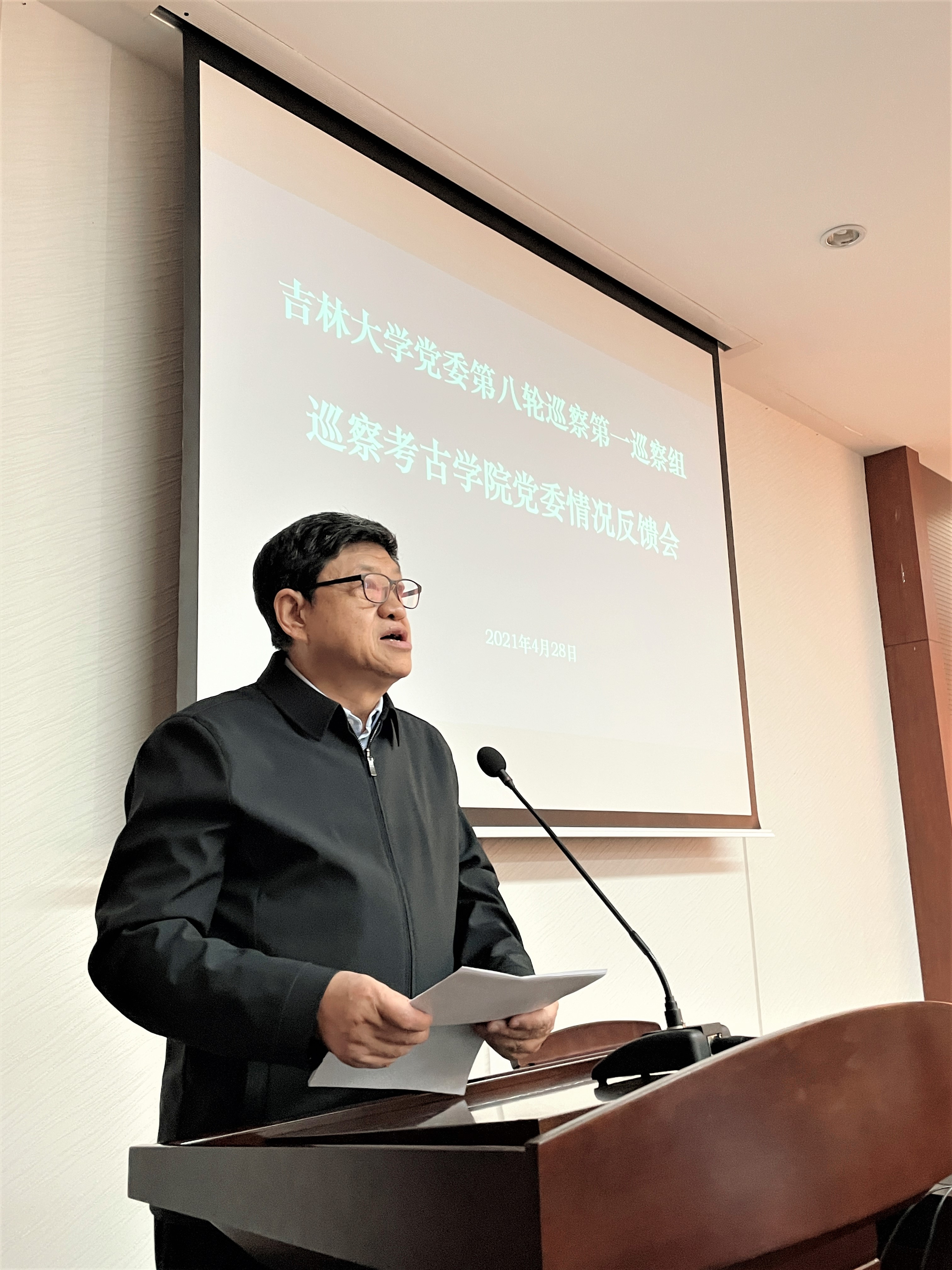 之后赵宾福代表学院党委表态发言。一要强化政治意识,正视问题。学院党委完全接受巡察组对学院班子建设和各项工作的巡察评价和巡察结果,将高度重视,认真研究,深刻领会,正视问题,落实整改。作为院长,一定会站在讲政治的高度,把全体干部职工的思想统一到校党委和巡察组的工作要求上来。二要强化担当意识,解决问题。会后由党委办公室牵头,立即成立专项整改工作领导小组,加强对巡察反馈问题整改的统筹安排。根据巡察组的反馈意见和提出的要求,专题召开党委会和民主生活会,认真研究制定具体的整改措施,明确整改目标、内容、时限、责任人。三要强化规范管理,防范问题。在深入整改的同时,举一反三、标本兼治,建立长效机制,切实加强人、财、物的管理,坚决杜绝本次巡察发现的问题在整改结束之后反弹回潮,坚决杜绝其他形式隐蔽的新情况、新问题出现。四要强化监督检查,问责问效。在整改过程中,院党委、纪委将强化监督执纪问责,不断巩固扩大巡察成果。
