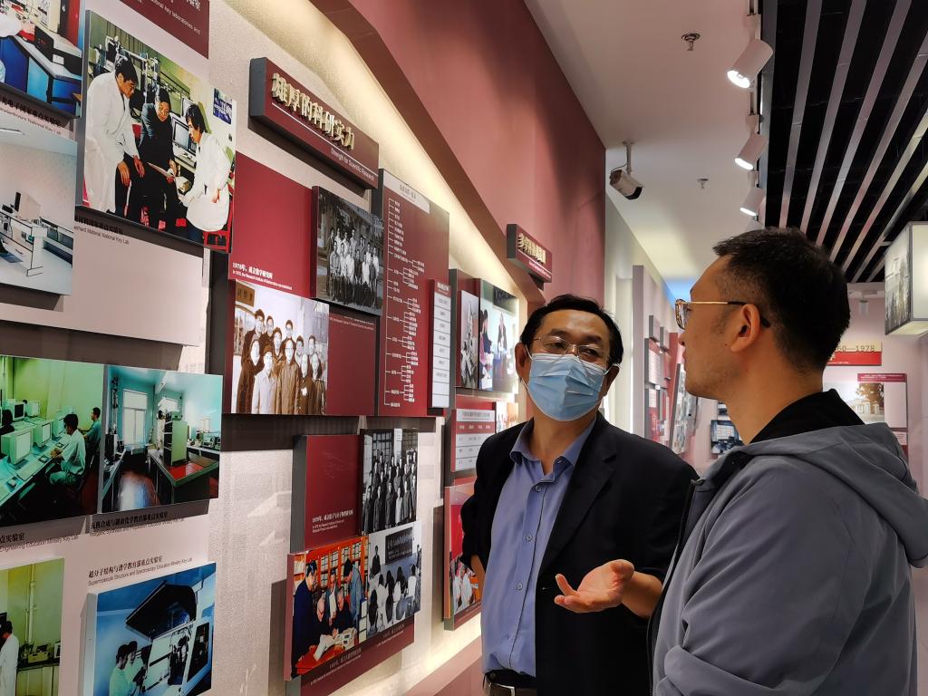 的党员教师们在熟悉的校歌中步入展厅,穿过时空走廊。