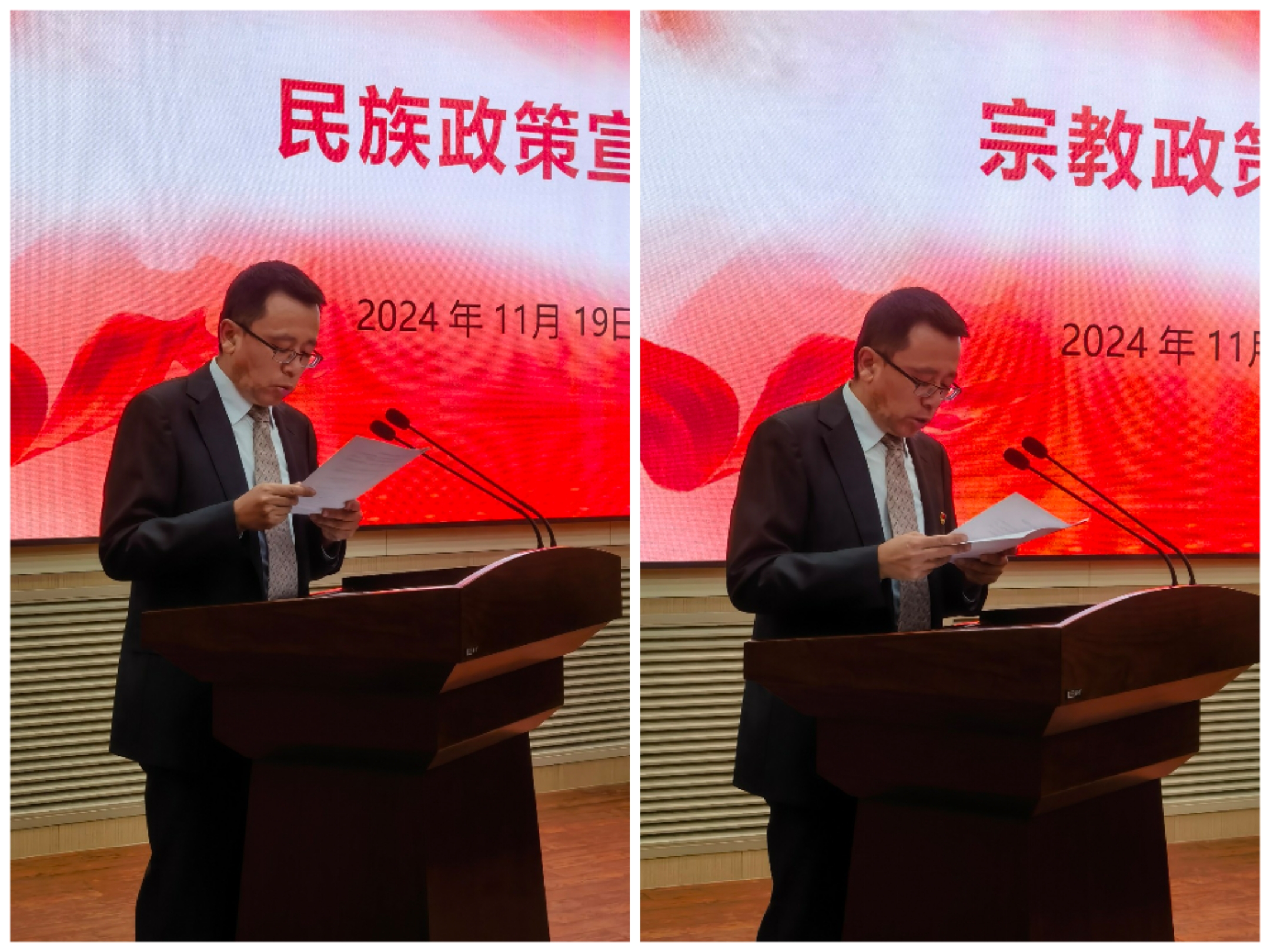 述职测评会结束后,学院党委副书记侯建峰进行了民族、宗教政策宣讲,结合学院自身情况向参会人员讲解了宗教和民族政策对学院的特殊意义,提醒学院教职工在工作中一定要学懂、悟透党的宗教政策和民族政策,把握好原则,掌握好工作方法。