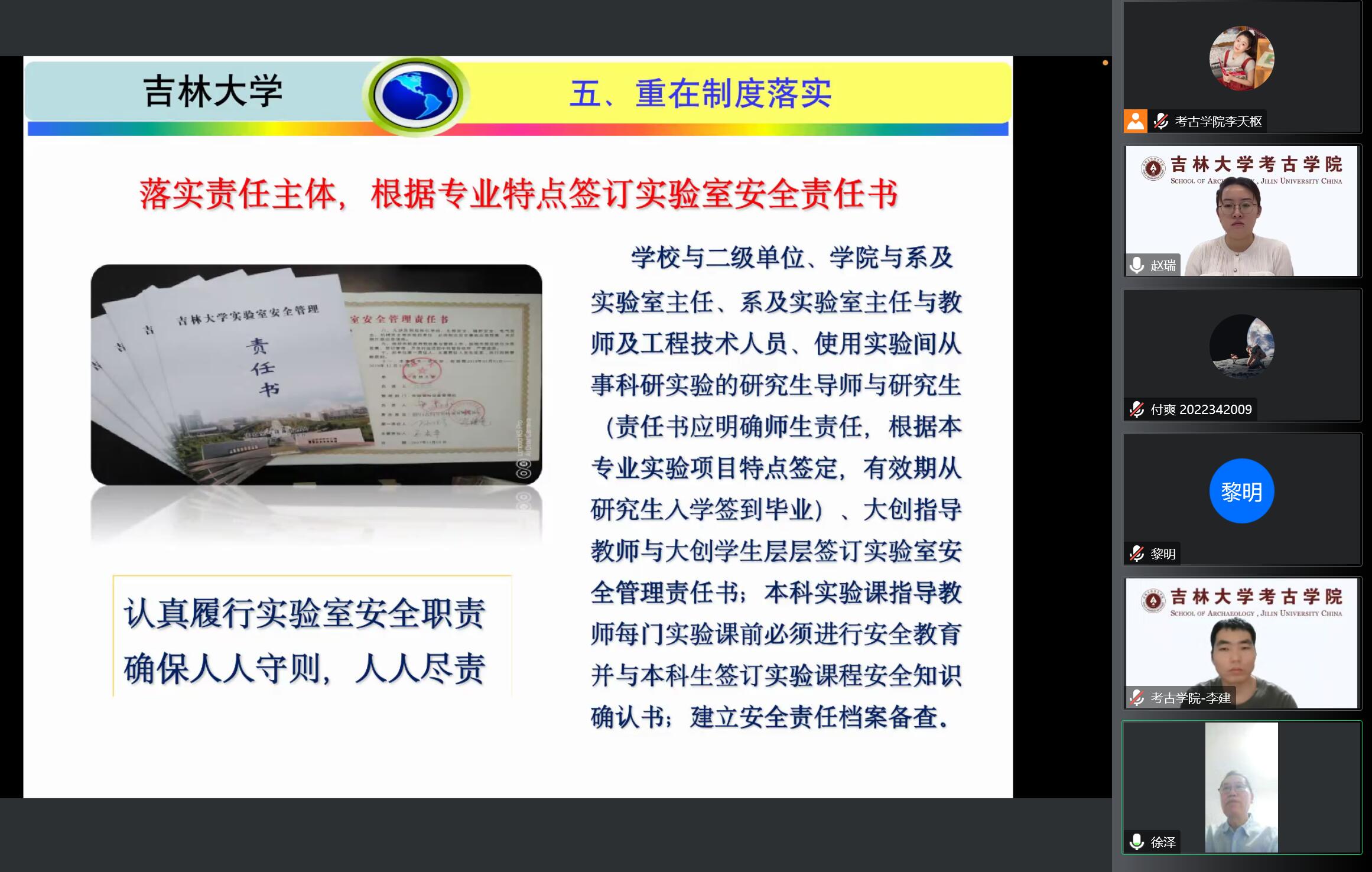 为进一步加强学院实验安全管理工作,强化师生实验安全意识,提升师生实验安全应急处置能力,保障实验室安全有序的运行,121518:00,由a片欧美 主办、生物考古实验室协办的“实验室安全文化月”专题系列讲座(第四讲)通过腾讯会议线上开讲。a片欧美 环安督察专家徐泽以“强化安全意识 重在守则尽责”为题,为a片欧美 教职工、生物考古实验室全体研究生、生命科学学院部分研究生共计67人做了实验室安全培训讲座。讲座由a片欧美 实验教学中心实验员赵瑞主持。