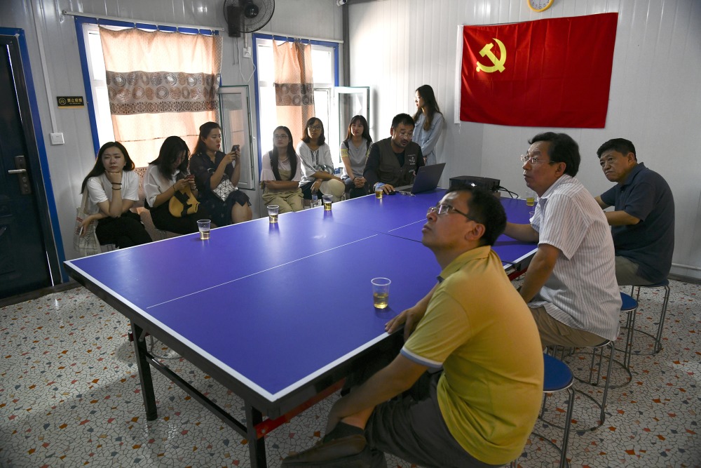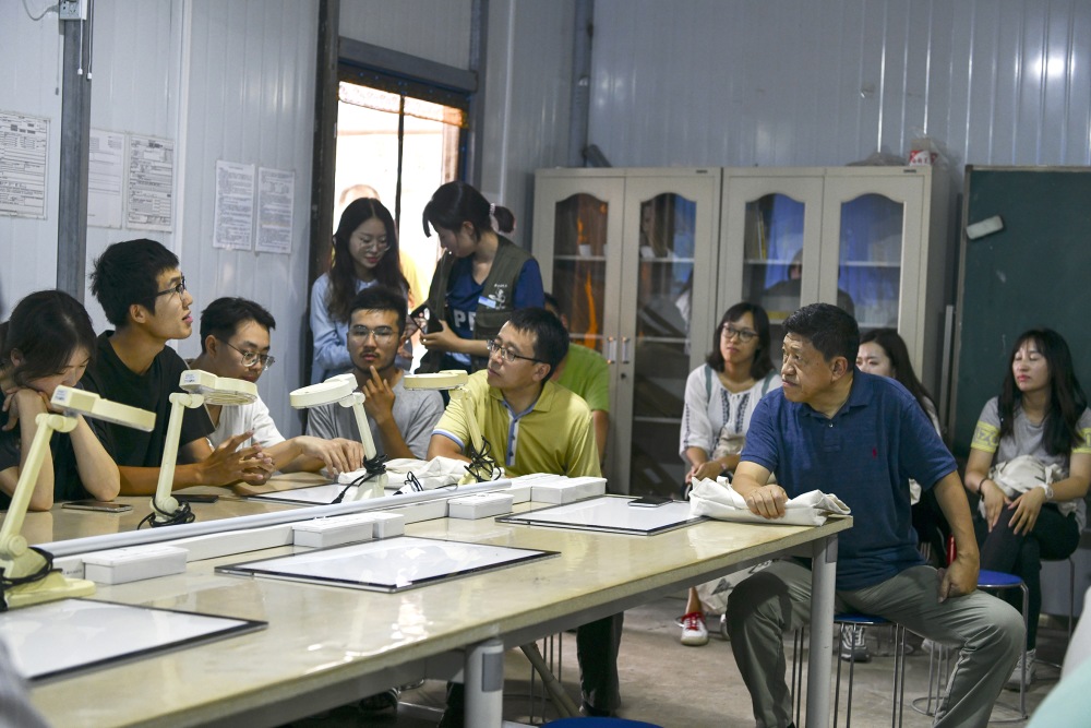之后,学院党政人员一行检查了文物库房、文物实验室、文物修复室、研究室、监控室、会议室、多媒体室、学生寝室、文娱活动室、食堂等工作与生活区域。方启老师与陈醉老师在会议室围绕遗址发掘概况与进度、重要的遗迹遗物、遗址数据管理系统、教学理念和方法的认识与提升四个方面对实习工作进行了汇报。随后全体师生们在多媒体室就课程设置、实习目标、实习内容、专业方向等问题进行交流座谈,赵宾福等进行解答,并鼓励同学们多对学院工作建言献策,促进学院“双一流”建设。