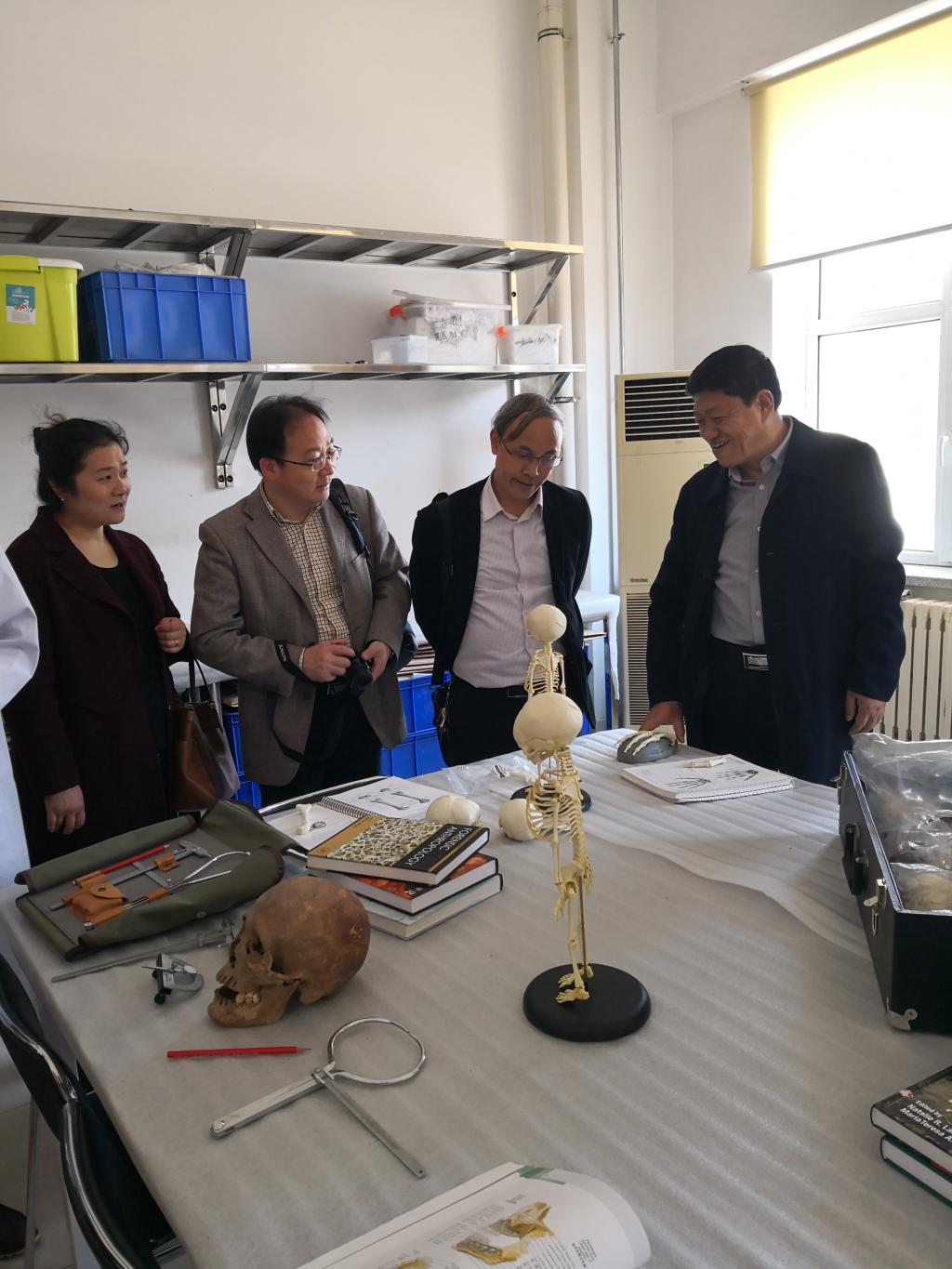 座谈会前,武汉大学历史学院一行参观考察了a片欧美 考古实验教学中心、体质人类学实验室及考古与艺术博物馆。