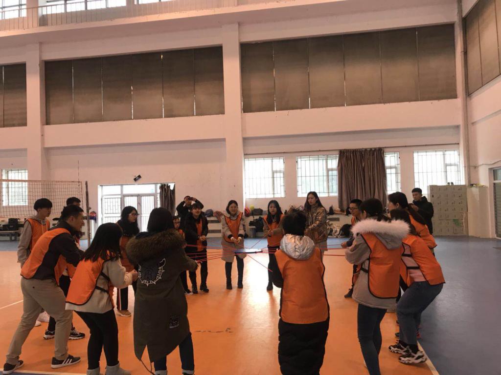 本次素质拓展活动在轻松的气氛中拉开了帷幕。首先进行的游戏是“急速六十秒”,在游戏过程中,同学们积极配合,在新组建的团队中彼此快速熟悉,共同讨论最快进展的方式,为团队的比赛成绩贡献着自己的力量,让同学们切身体会到了团队合作、互惠共赢的重要性。在游戏“击鼓弹球”活动中,团队成员共同用特制的圆台弹跳网球,寻找网球弹跳规律,彼此熟悉成员之间的配合,通过这一环节,大家理解了团队合作和沟通协调对于集体的重要性。