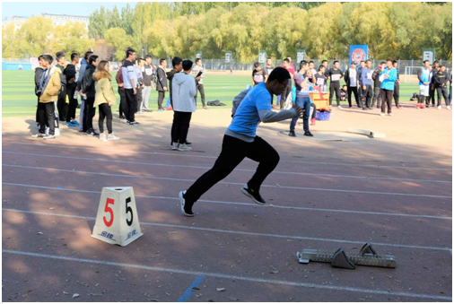 本次比赛共派出冯婷婷、王英萍、贾晶茹、孙晓蓉、聂新予五名女生参与决赛角逐。比赛中,五名运动员依次排列,后一个人用双手扶着前一个人的肩膀,依靠团队的协作奋力向前奔跑。她们目视前方,共同喊出响亮的口号来调整步调。现场气氛热烈,运动员们在欢呼声中更是加快了脚步,坚定信念,不懈拼搏。最终,经过多日的训练,运动员们不负众望,100米的跑道上,他们凭借着整齐的步伐、互相配合的动作,冲过终点,跑出了第四名的优异名次。