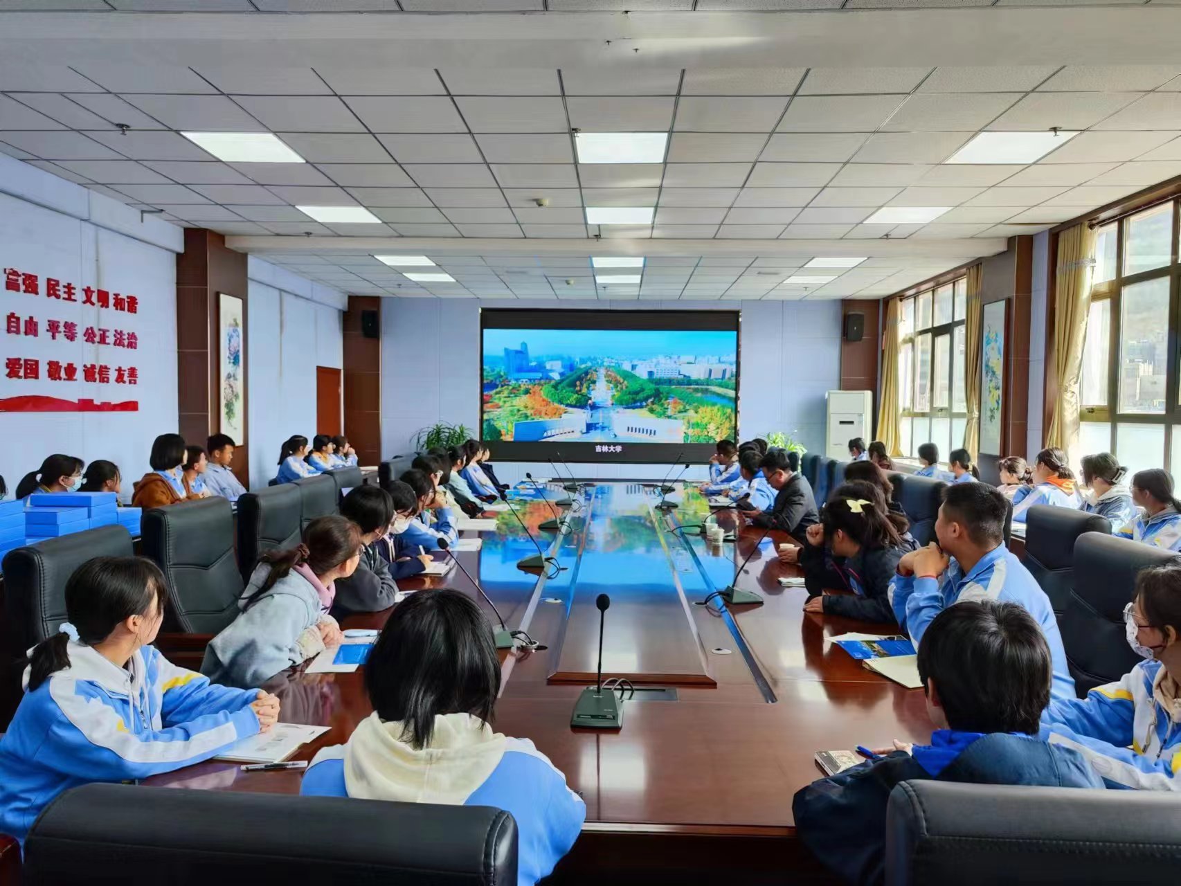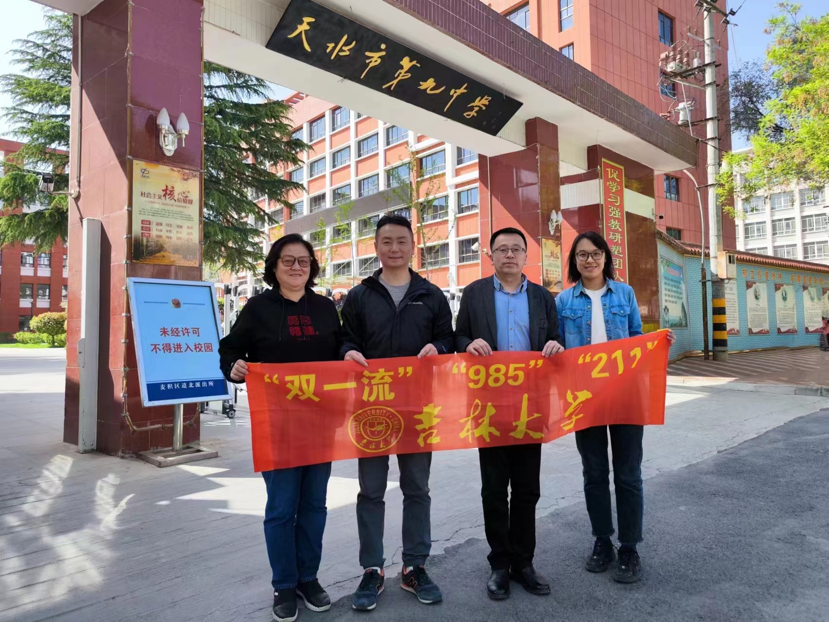 对天水一中进行“优秀生源基地”授牌并合影留念。随后,宣讲团面向高三重点班学生进行主题宣讲,宣传材料和纪念品发放,与学生面对面展开深入交流。