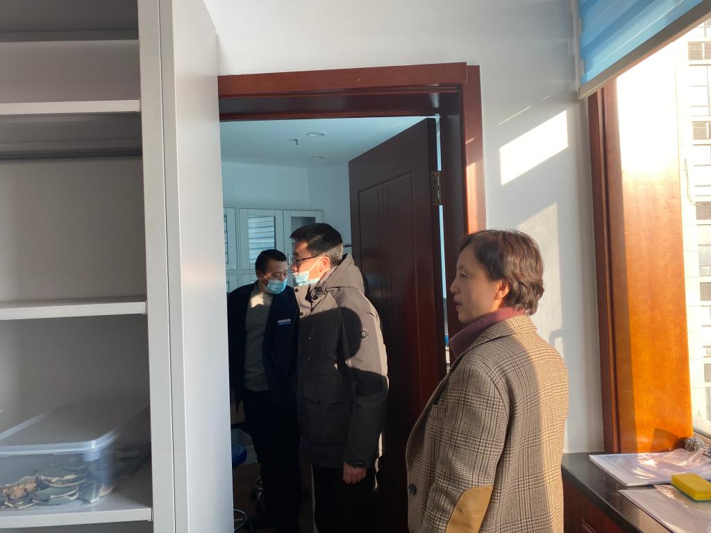 副书记兼副院长侯建峰、边疆考古研究中心行政副主任薛振华及相关工作人员对所辖办公室、研究室、实验室开展全面安全检查。