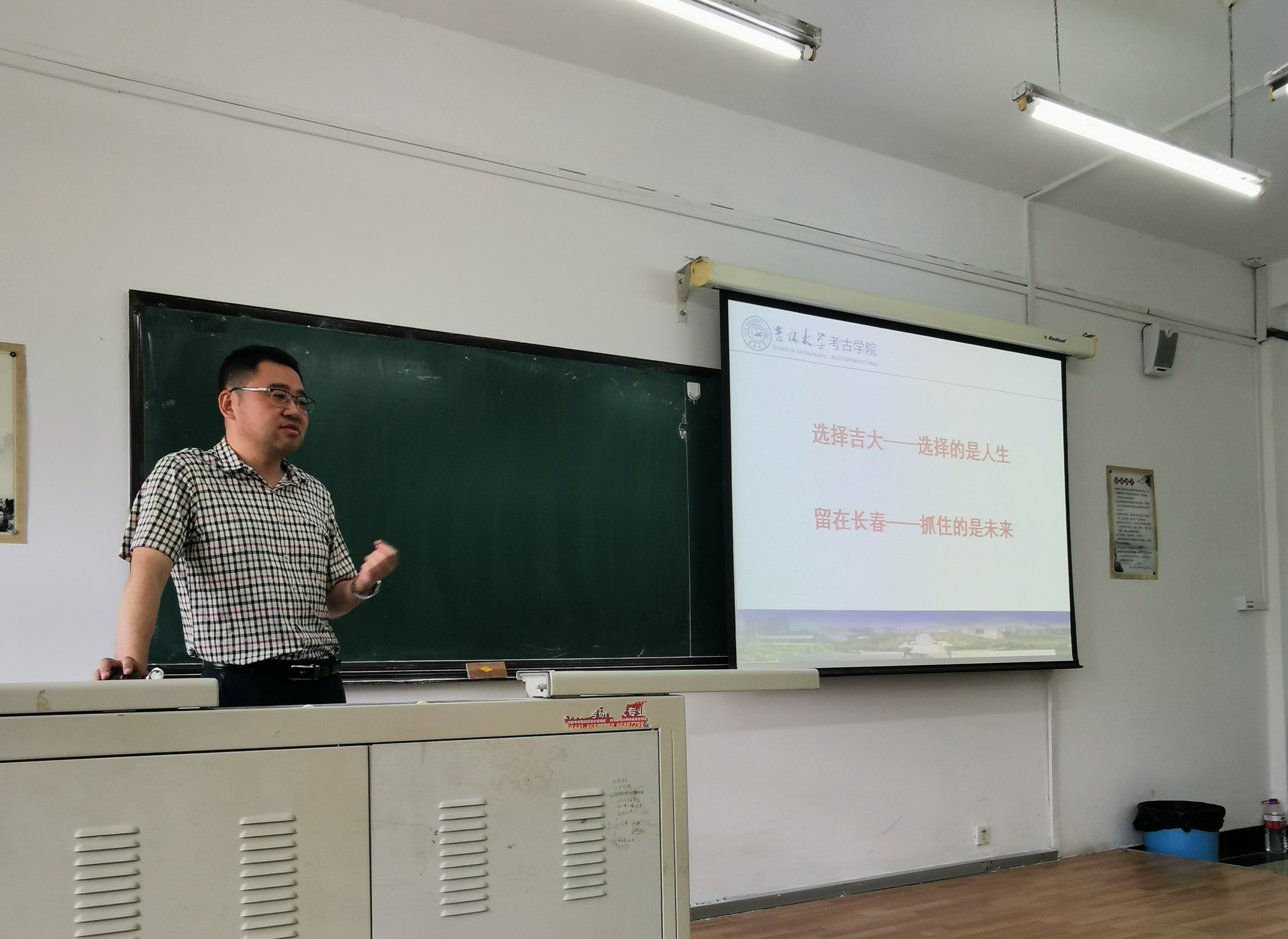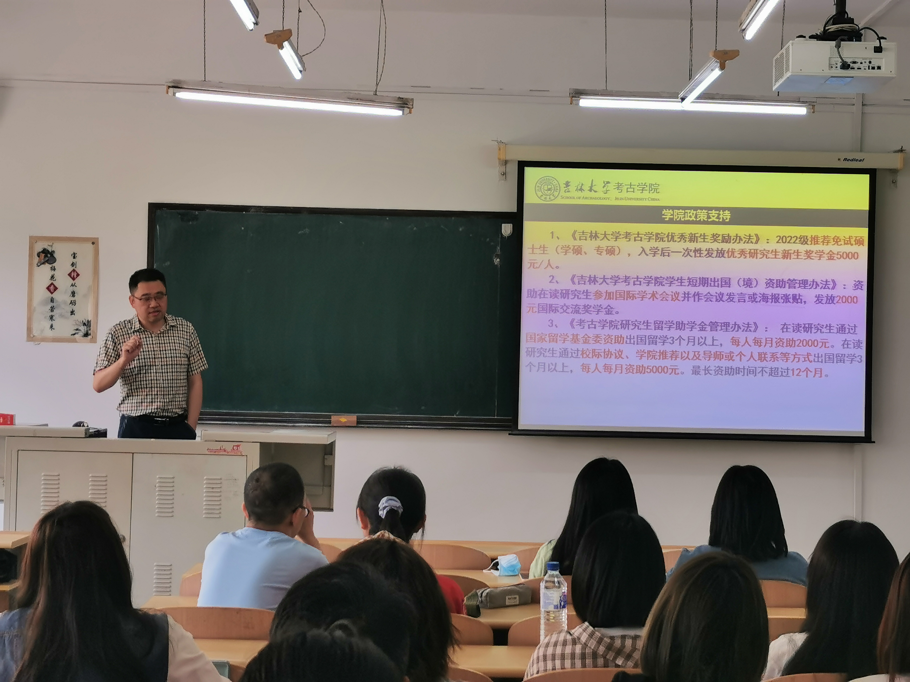 研究生招生宣传册,然后结合实际情况,详细介绍了吉大考古的发展历程、研究生招生方向以及校院两级奖助政策,并向同学们进一步阐释了本校学生“选择吉大,选择的是人生;留在长春,抓住的是未来”。吴敬老师希望同学们能够在自身合理定位的基础上,寻找到有效的学习方法,积极报考吉大考古。最后,吴敬老师和王春雪老师还对同学们关心的问题进行了细心的解答。