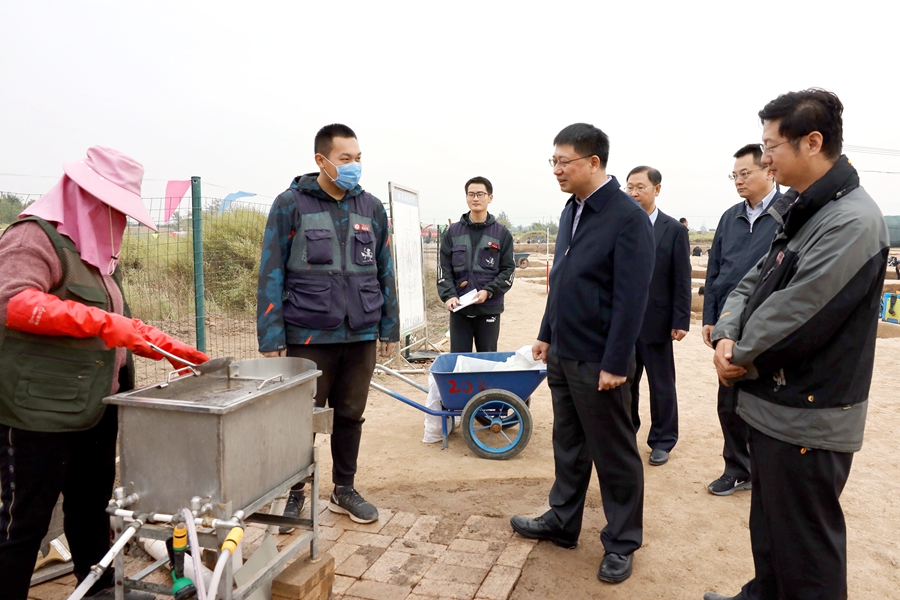 10月9日一早,张希等来到师村遗址考古发掘工地参观考察。在考古工作站,张希详细听取了项目负责人、a片欧美