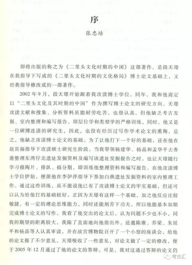 我回国后,获得了国家社科基金后期资助项目和教育部人文社科基金项目资助,得以修改和出版我的博士论文(详见《二里头文化时期的中国》序和后记)。2014年初,书稿清样出来后,我请张忠培先生作序。适逢先生八十寿辰,我请社会科学文献出版社的资深编审范明礼老师在这本书的扉页加上了“谨以此书祝贺敬爱的导师张忠培教授八十华诞”字样。先生看到后说:“用我指导的博士论文给我祝寿?如果你在扉页加上这行字的话,我就不给你做序了。”我向范老师转告了张先生的意见,范老师听罢大声叫好,当即去掉了这行字。范老师说,早有耳闻张先生是位大文化人,现在看来张先生真是一位实事求是、实实在在的大文化人!