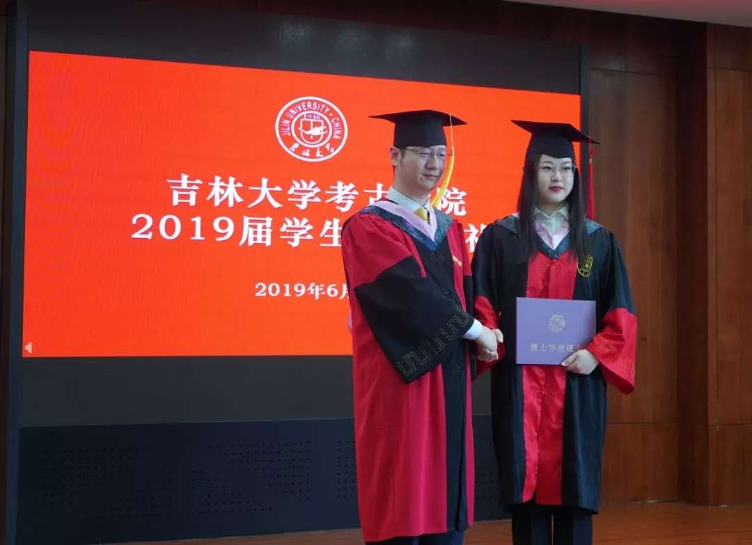 学位委员会历史学分委会委员王立新教授,共同为全体毕业生颁发学位证书、行拨穗礼。全体毕业生秩序井然,依次上台接受拨穗礼,并与两位教授深情握手,合影留念。