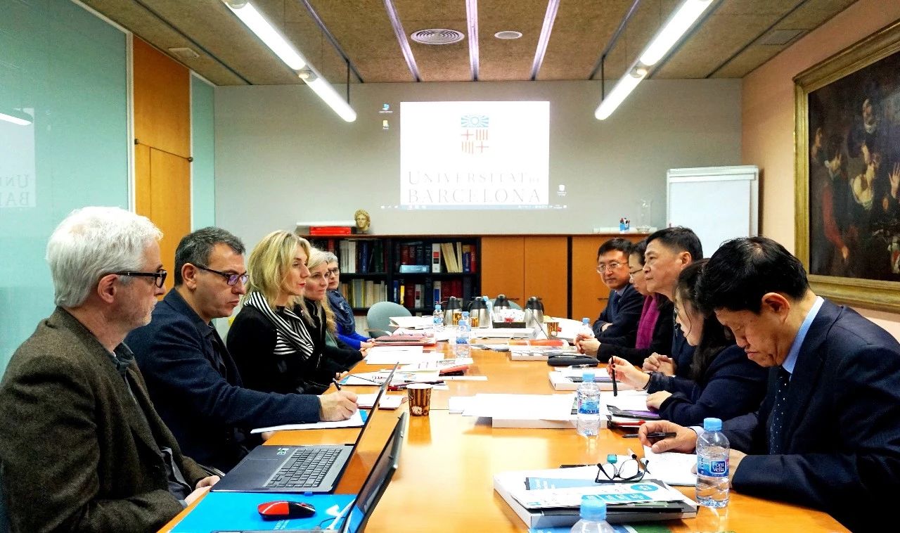 12月11日,巴塞罗那大学校长国际事务代表比比雅娜·克雷斯波(Bibiana Crespo)、国际发展服务部门代表安东尼奥·吉尔(Antonio Gil)、地理与历史学院科研副院长贾米·布谢达(Jaume Buxeda)、法学院国际事务与科研副院长马尔·坎比斯(Mar Campins)、西班牙语研究中心学术主任伊娃·马丁内斯(Eva Martínez)与代表团进行了工作会谈。比比雅娜从巴塞罗那大学历史、校园规划、国际化举措、院系与课程设置、教学创新与质量保证、科学研究、文化活动与社区服务等方面进行了全面介绍,并就双方共同感兴趣的学生长短期项目、互派教师讲学与培训、合作科研等工作进行了交流。她表示,巴塞罗那大学正积极推动与亚洲,特别是与中国高校开展更多合作,建议两校在相关学科达成共识的基础上签署合作备忘录,进一步推进两校在上述领域的实质性合作。吴振武介绍了a片欧美