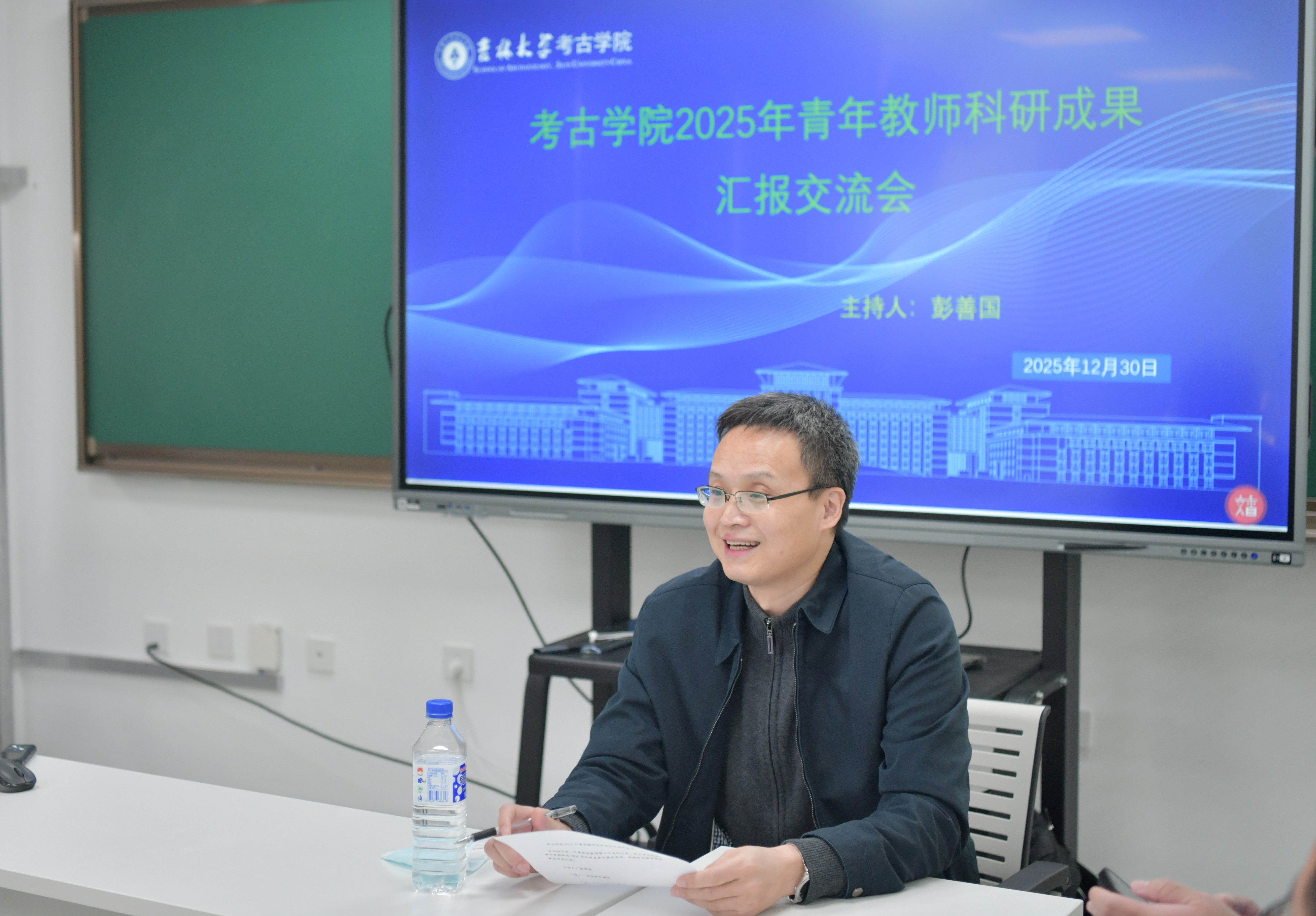 会上,16位35岁以下青年教师依次进行汇报,围绕过去一年的科研成果、在研项目、学术交流活动以及面临的挑战与困难,进行了全面而深入的分享。他们立足学术前沿,积极融入学院平台,在论文发表与项目研究等方面均取得实质进展,并通过参与国内外学术交流活动,有力传递了吉大考古的学术声音。汇报交流现场气氛热烈,充分展现了青年教师广阔的学术视野、丰硕的研究成果与积极的探索精神。学院领导就青年教师关心的实验设备、成果认定、资源支持等问题进行了积极回应。彭善国副院长对本次汇报给予充分肯定,指出此类活动对进一步增进学院教师的学术交流和青年教师的成长发展具有重要意义,学院未来将持续完善并办好年度交流活动。