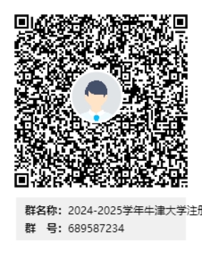请申请人将由教学科研单位相关负责人签字并加盖单位公章的申请表(附件2)于12月1日(星期五)16:00之前交至国际合作与交流处交流与学生项目管理科(中心校区鼎新楼A628室),并扫码加入以下qq群。同时发送“四、申报材料”中所述材料电子版至[email protected]。最终录取结果由牛津大学相关学院确定。