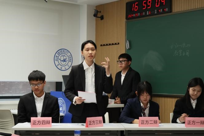立论环节,正方一辩赵亦婴沉稳且深思熟虑,她以波澜不惊的语调将论据逐一铺陈,深入浅出地阐述论点,面对质询时从容不迫,如同山岳般稳定,将对方的攻击一一化解。