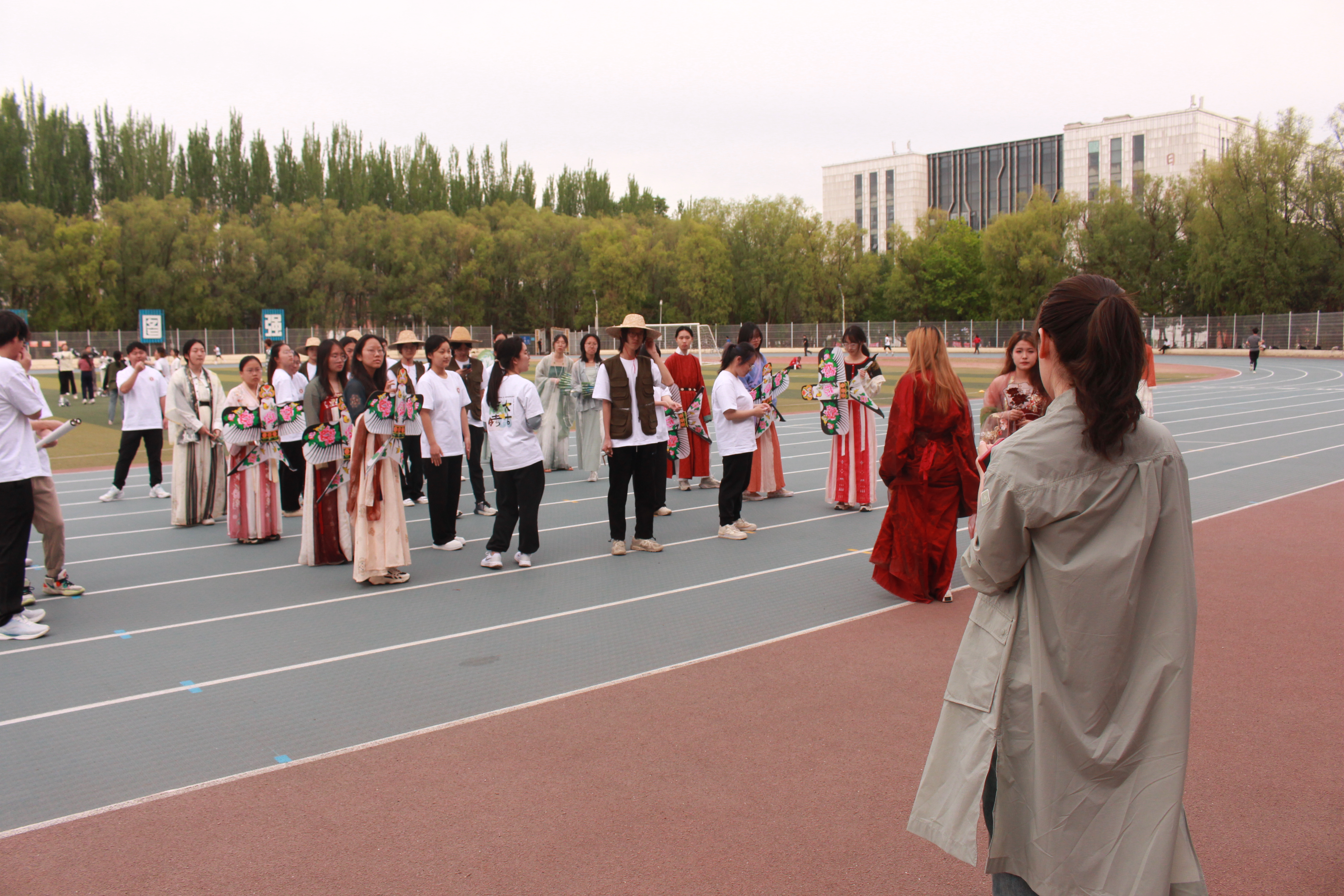 运动会开幕式方队陆续进行了多次集体排练。排练主要由李禹恒、王笑扬负责组织,唐诗雨进行指导,2023级43位同学参与排练。
