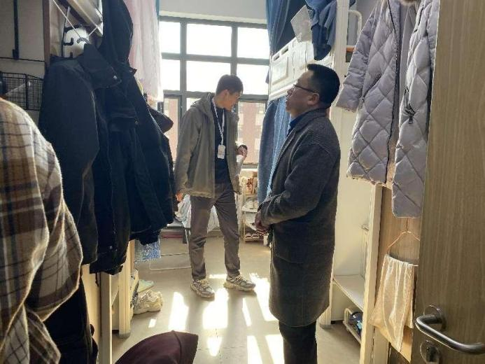 副书记兼副院长侯建峰、研究生辅导员依德日贡于4月3日对学院研究生寝室进行了走访检查。