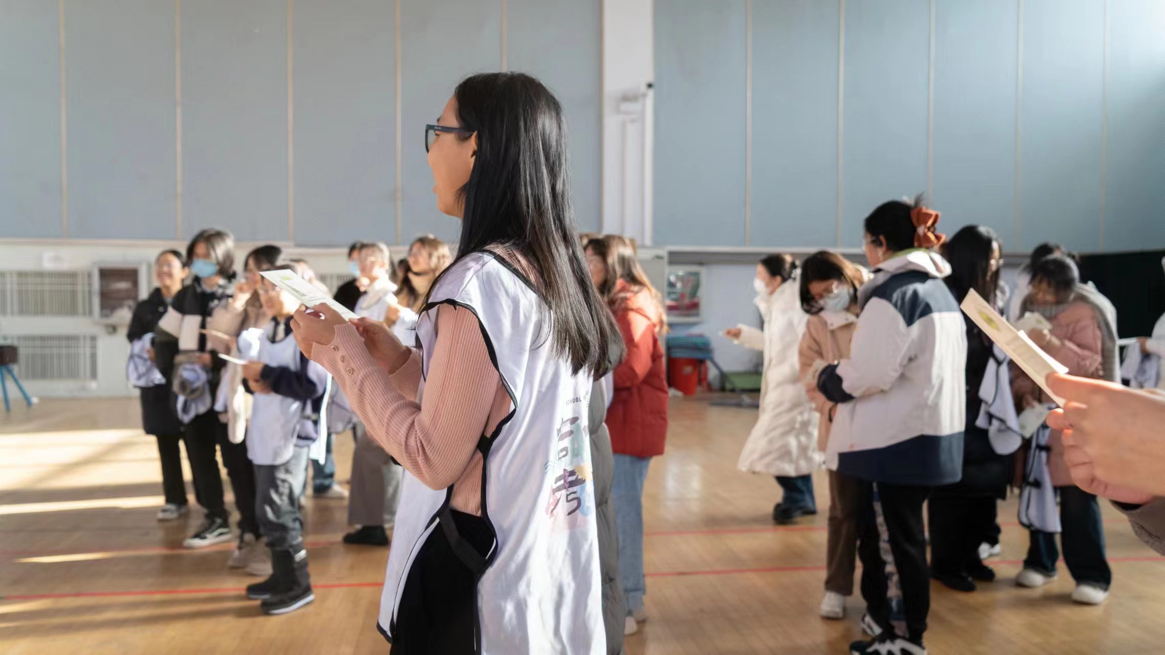 本次活动分主线任务和支线任务两部分。在主线任务中,设置了七个既比拼脑力、又比拼体力的合作项目,例如“快问快答”“摇色子踢毽子”等。同学们按照不同游戏点的规则相互组队,合作完成游戏,获得盖章奖励。