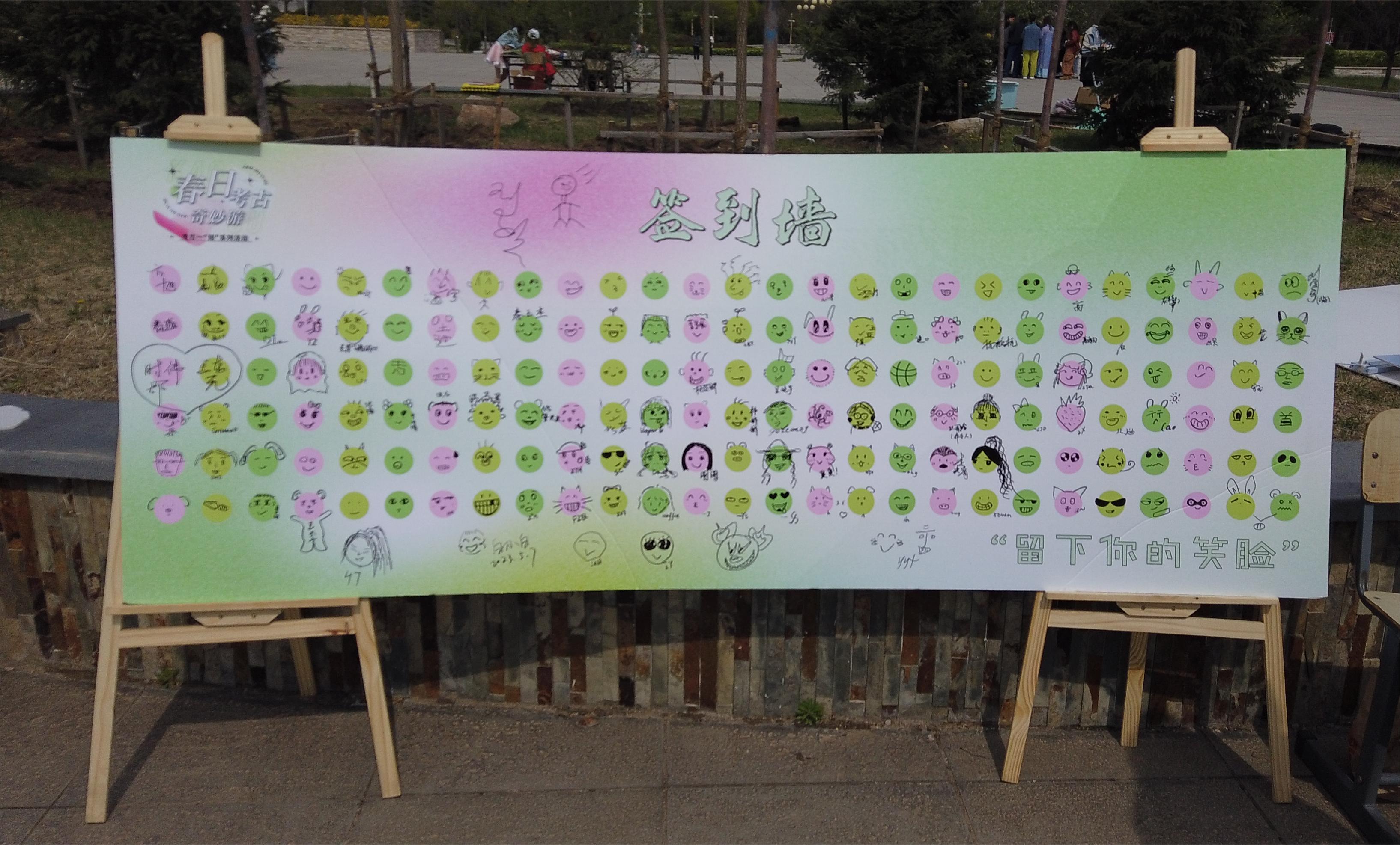 除此之外,我们的签到处亦是精彩纷呈。同学们争先恐后与玉猪龙合影,在签到板上绘出自己的笑脸,每一帧每一笔都代表着对美好生活的微笑和称赞!