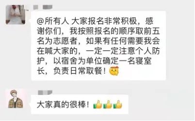 迅速召集了硕博研究生志愿者队伍,在各个宿舍楼中投身抗疫战斗,积极为同学们服务,与各宿舍楼长老师、各宿舍来自不同学院的志愿者同学们、研究生秘书老师积极配合,保障封闭期间宿舍各项工作的顺利进行。