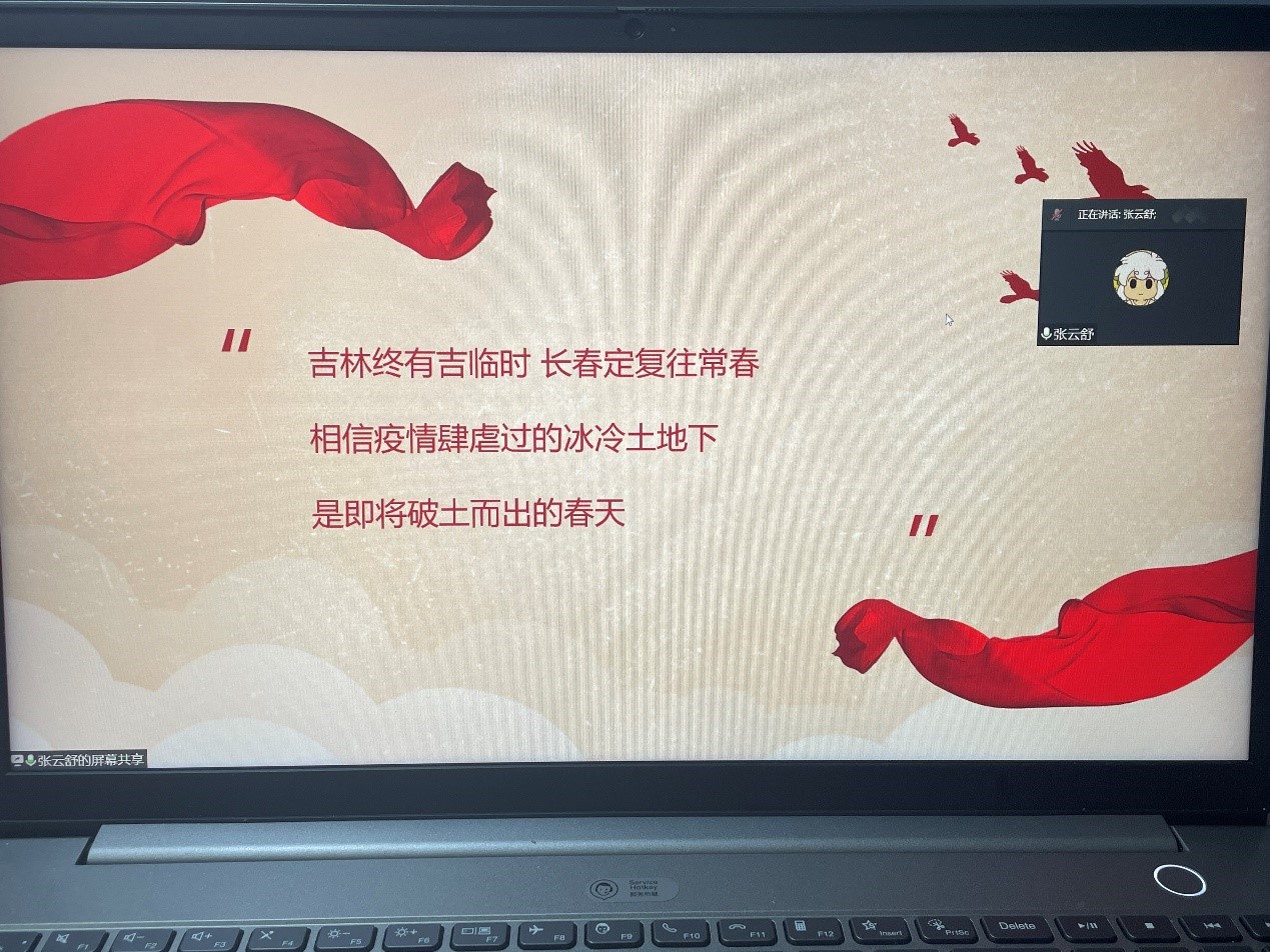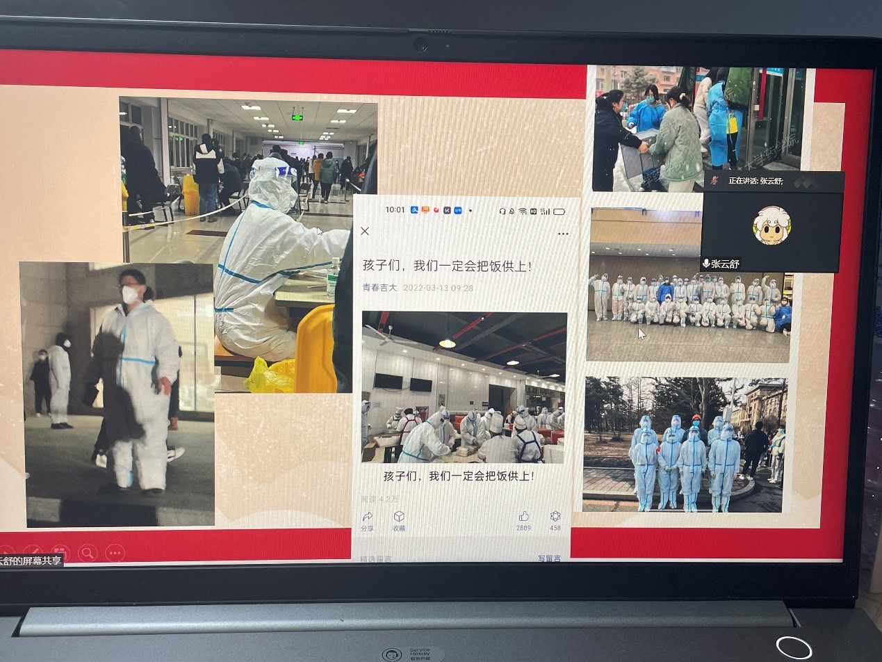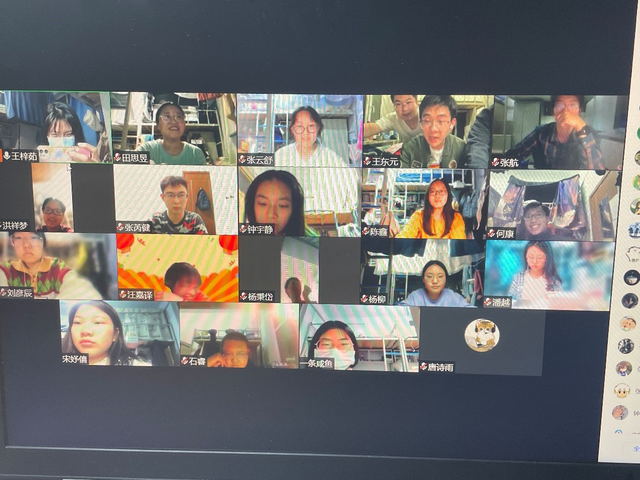 2021级二班组织开展了线上疫情防控主题教育线上班会,围绕疫情防控、线上学习和生活保障等内容进行了对话交流。会议由宣传委员张云舒同学主持,班级全体同学参与了此次会议。