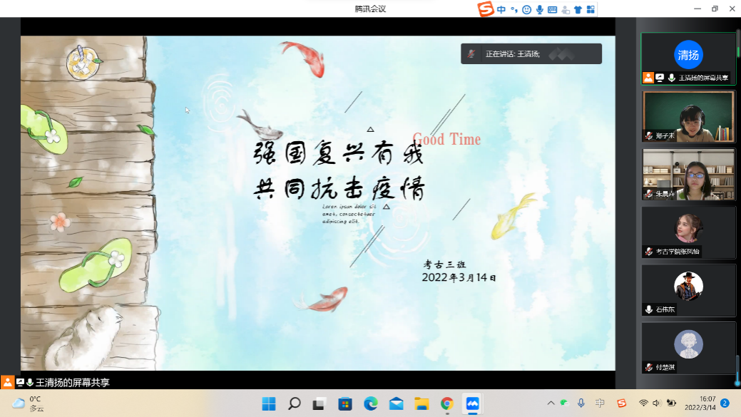 2021级古文字班于线上组织开展了疫情防控导学主题班会。会议由班长王清扬同学主持。