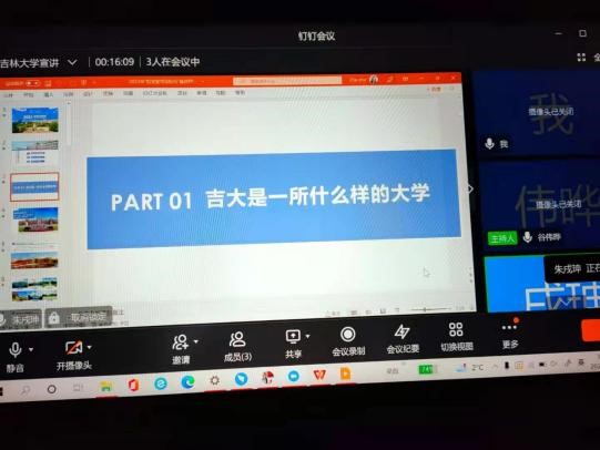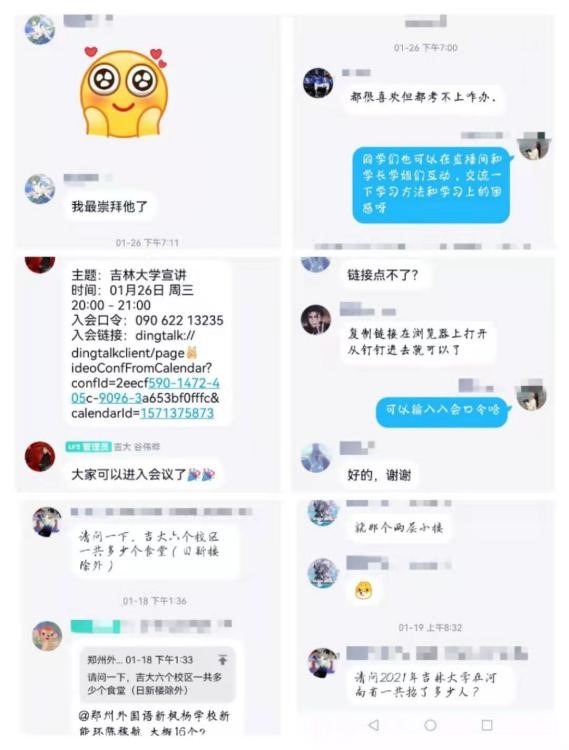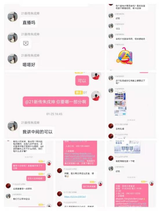 活动之初,张一曼同学联系了高中老师及其他宣讲成员,建立了招生宣讲群,商议了具体宣讲时间和活动安排,以及宣传海报制作、宣讲注意事项等细节。根据高三学生疫情居家期间多采用钉钉上网课的情况,宣讲队确定采用钉钉会议线上宣讲的方式进行宣讲。