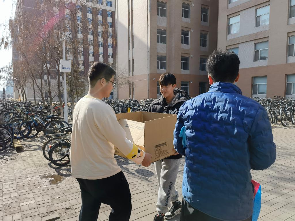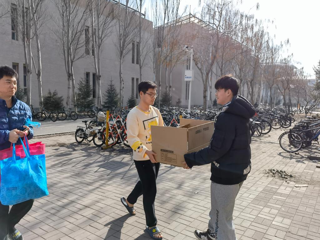 党委副书记兼副院长侯建峰、学生工作办公室主任杨晨、研究生秘书于歌前往学生所在宿舍为学生发放抗疫物资,激励学生提振信心,齐心协力,共抗疫情。