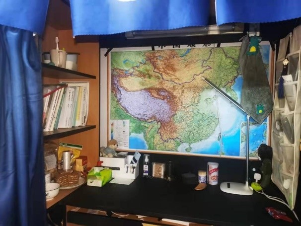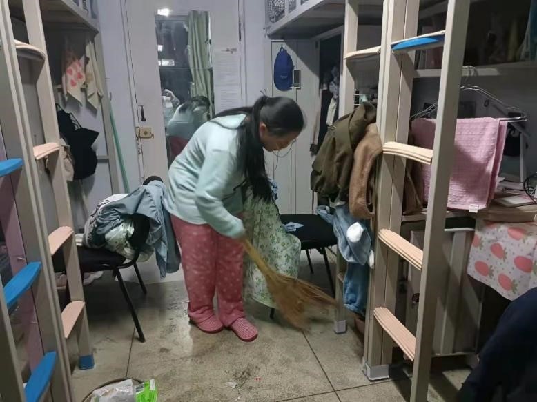 在活动通知发布后,同学们以极大的热情积极投身于寝室卫生的清扫活动中,纷纷拿起身边的抹布、扫把等工具,对寝室进行了彻底的清洁工作。各年级同学各显其能,以集体的智慧和劳动打造了一个个干净明亮、温馨整洁的寝室。尽管2018级的同学正面临考研与就业的压力,但也积极参与其中,对寝室环境进行了彻底清扫,对个人物品进行了归置。2020级的同学同样以饱满的热情投入到寝室劳动活动中,不仅对整体卫生环境做了清洁,而且对自己的书桌进行了装饰,展现了自己的创意。值得关注的是,2021级新生同学虽然仍处在紧张劳累的军训之中,但大家仍然积极利用闲暇时间整理内务,打扫卫生。参与寝室劳动主题教育的同学乐在其中,不时能在水房看到倒垃圾涮拖布的同学,走寝的时候也会看到同学在积极归纳个人物品。大家的书桌整洁有序,书籍排列整齐,被子总是工整的叠到床脚。除了经常打扫的地板,更对寝室门、窗户、窗台以及各自的组合柜进行了深度清扫。