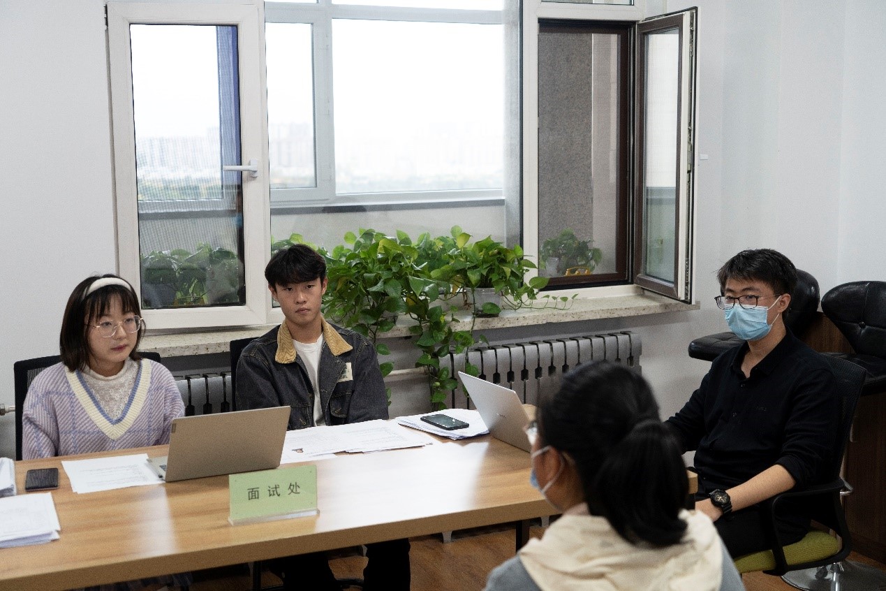 团委于工会活动室开展了第四届团学组织成员纳新面试工作。本次面试由柴光进、项悦、吴芊妤、査吉薇、卫江南五位团学组织负责人主持并担任线下面试官,在田野考古实践教学基地实习的团委副书记温景超、学生会主席团成员李广泽担任线上面试官。面试过程由团委宣传部通讯中心高洁负责拍摄并做会议记录。2021级新生共有37位同学报名参加了本次纳新面试。