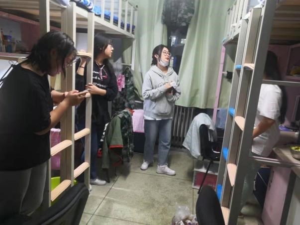 走访之初,党支部成员分为两大组,在确定了走访的范围、行程和访问主题后,同时对男女生寝室开展了慰问活动。大家首先就新生生活方面的问题进行了亲切交谈,询问了同学们在学习和生活中遇到的难题。初入大学,新生们既有对家乡的思念,又有对校园生活的懵懂,内心充满了复杂的情感。对此,党支部成员与同学们深入谈心,积极疏解,对他们可能遇到的问题进行了排疑解惑,向他们传递了学院的温暖。同时,党支部成员向新生同学们开展了入党宣传,普及了入党流程,介绍a片欧美