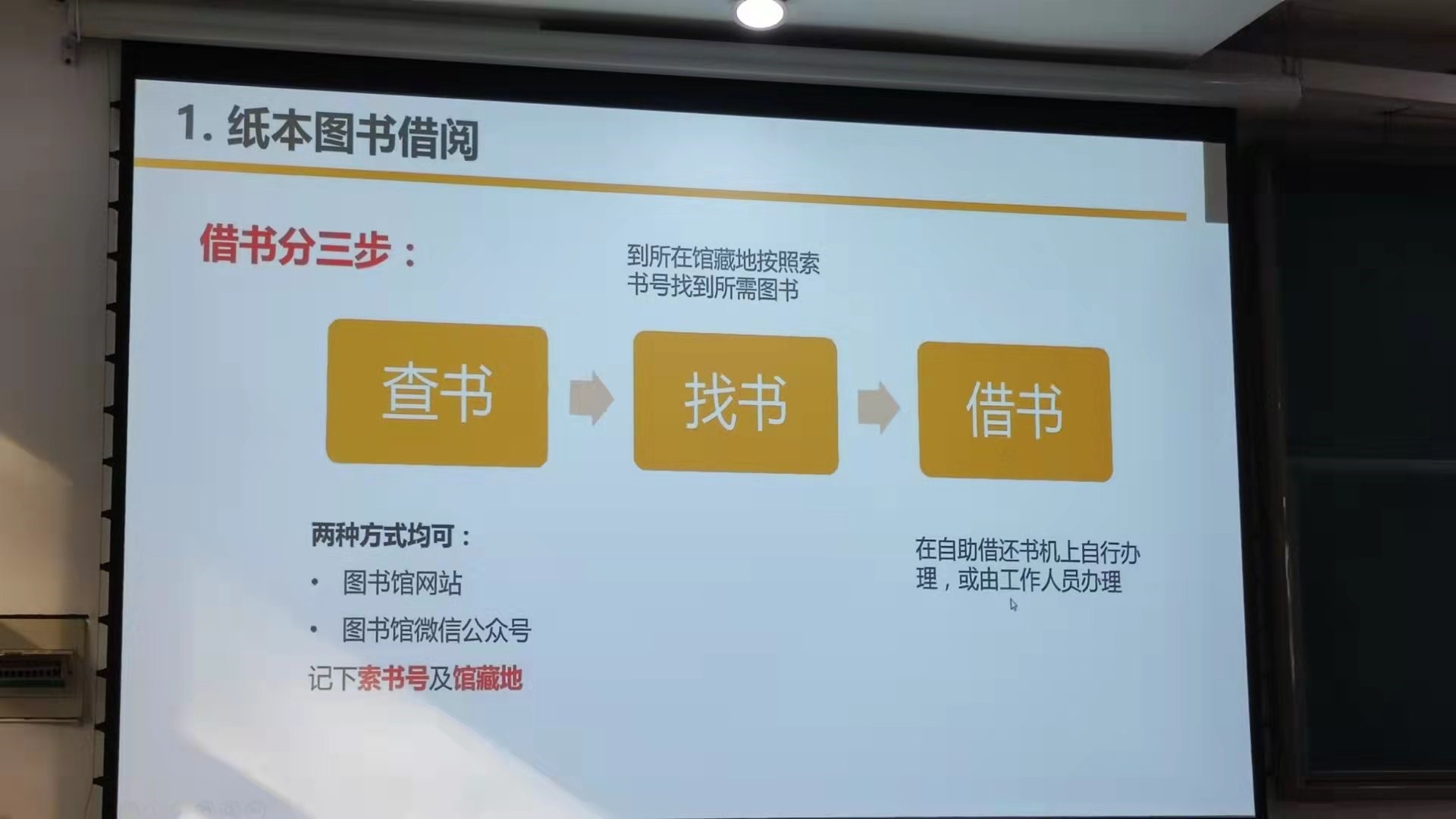 首先,图书馆刘老师向同学们介绍了图书馆的概况、开馆时间、资源服务、借书卡使用及图书馆规章制度、图书借阅规则、电子资源的使用方法等内容。通过精心准备的幻灯片,刘老师向大家讲解了图书馆在大家四年求学生涯中的重要性,引导大家了解了图书馆的功能及资源利用方式,为新生后期的入馆学习打下了良好的基础。在刘老师声情并茂的解说下,同学们对图书馆充满了好奇,也激起了对知识的渴望。对他们而言,能在这样环境整洁、资源丰富的图书馆学习是一种幸福与骄傲。