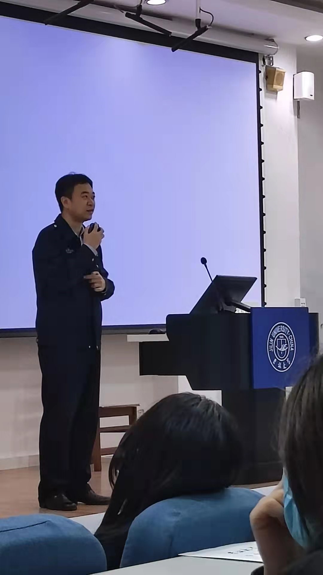 随后,保卫处齐老师用通俗的语言、生动的故事,为大家作了一场精彩的校园安全知识讲座。通过一个个真实的、发生在身边的校园安全案例,齐老师深入浅出地向大家介绍了保卫处担负的学生安全工作职责,讲解了学校的安全保障措施和安全管理规章制度,告诫同学们要遵守学校安全管理规定,加强安全防范意识,提升安全防范技能。讲座现场气氛活跃,同学们在老师幽默诙谐的讲解中,了解了校园安全的重要性,掌握了安全知识,收获满满。