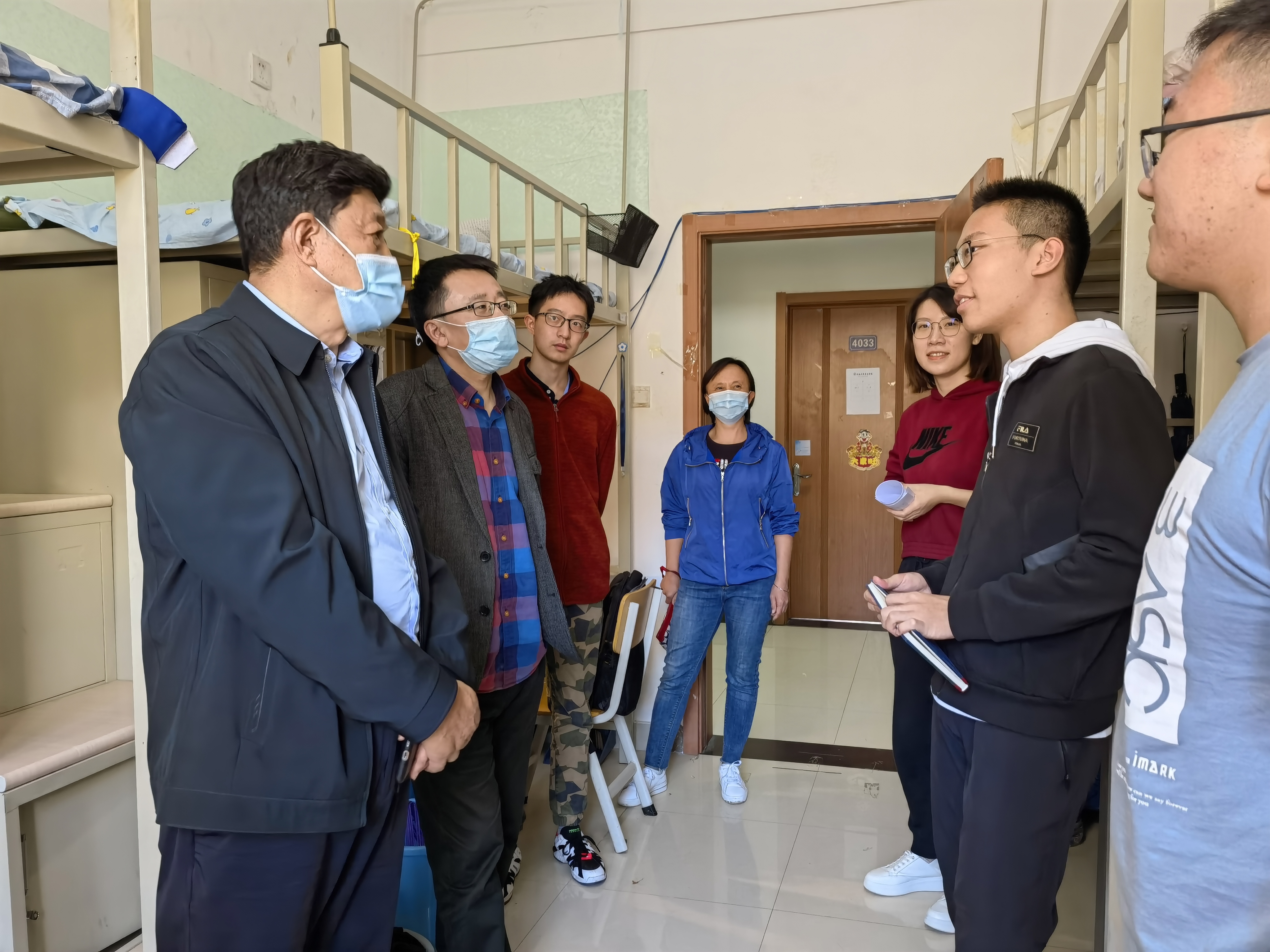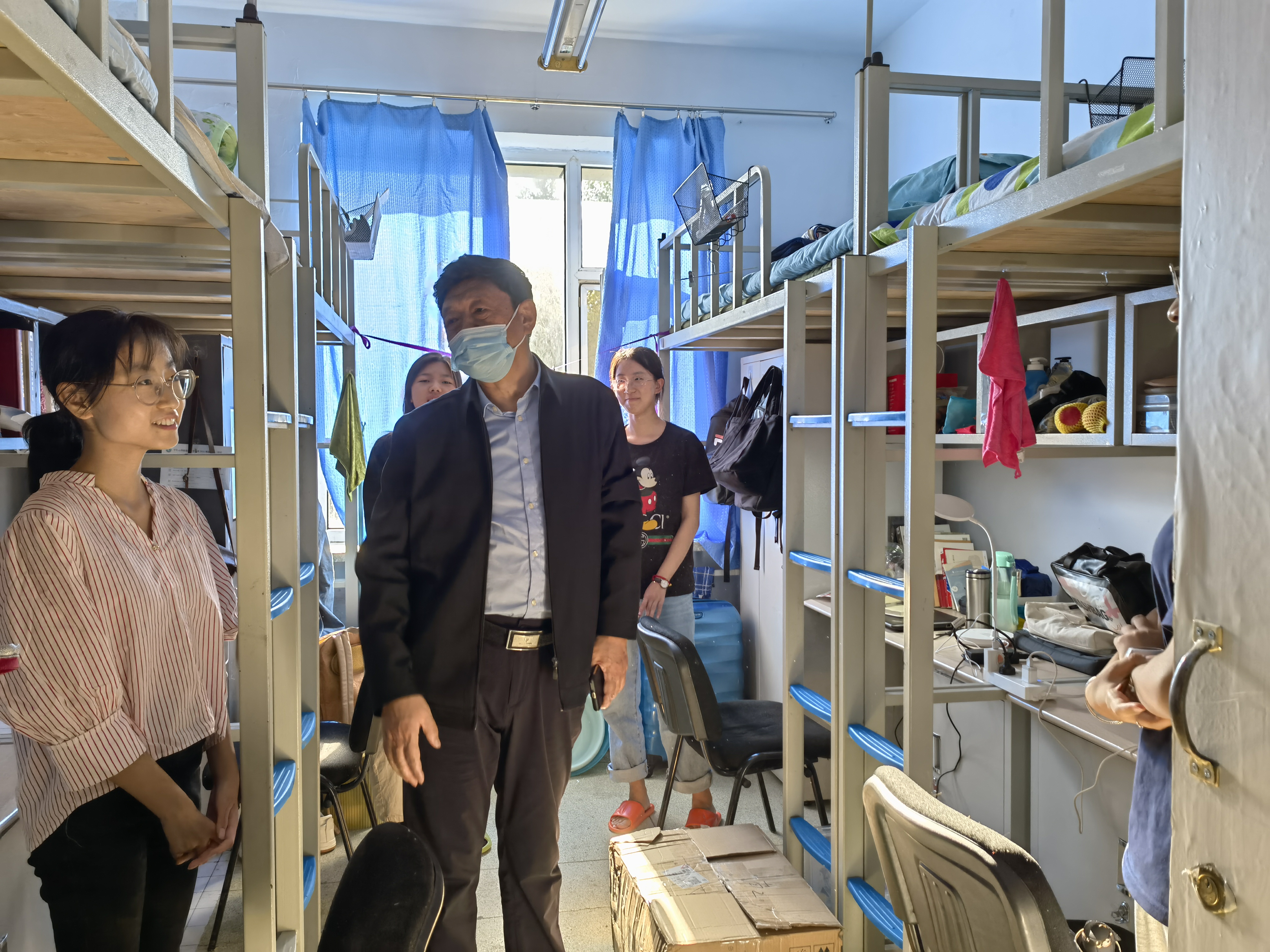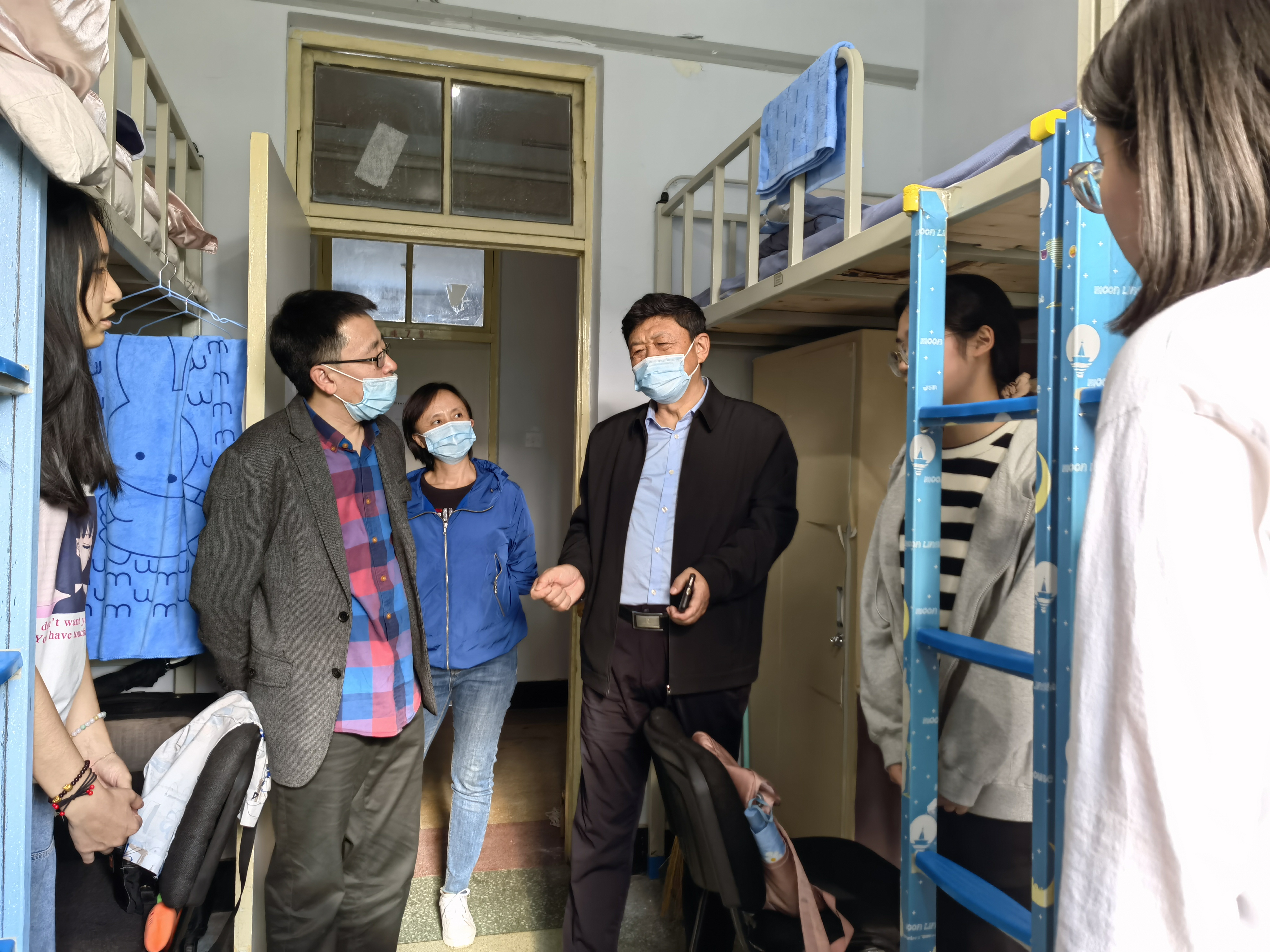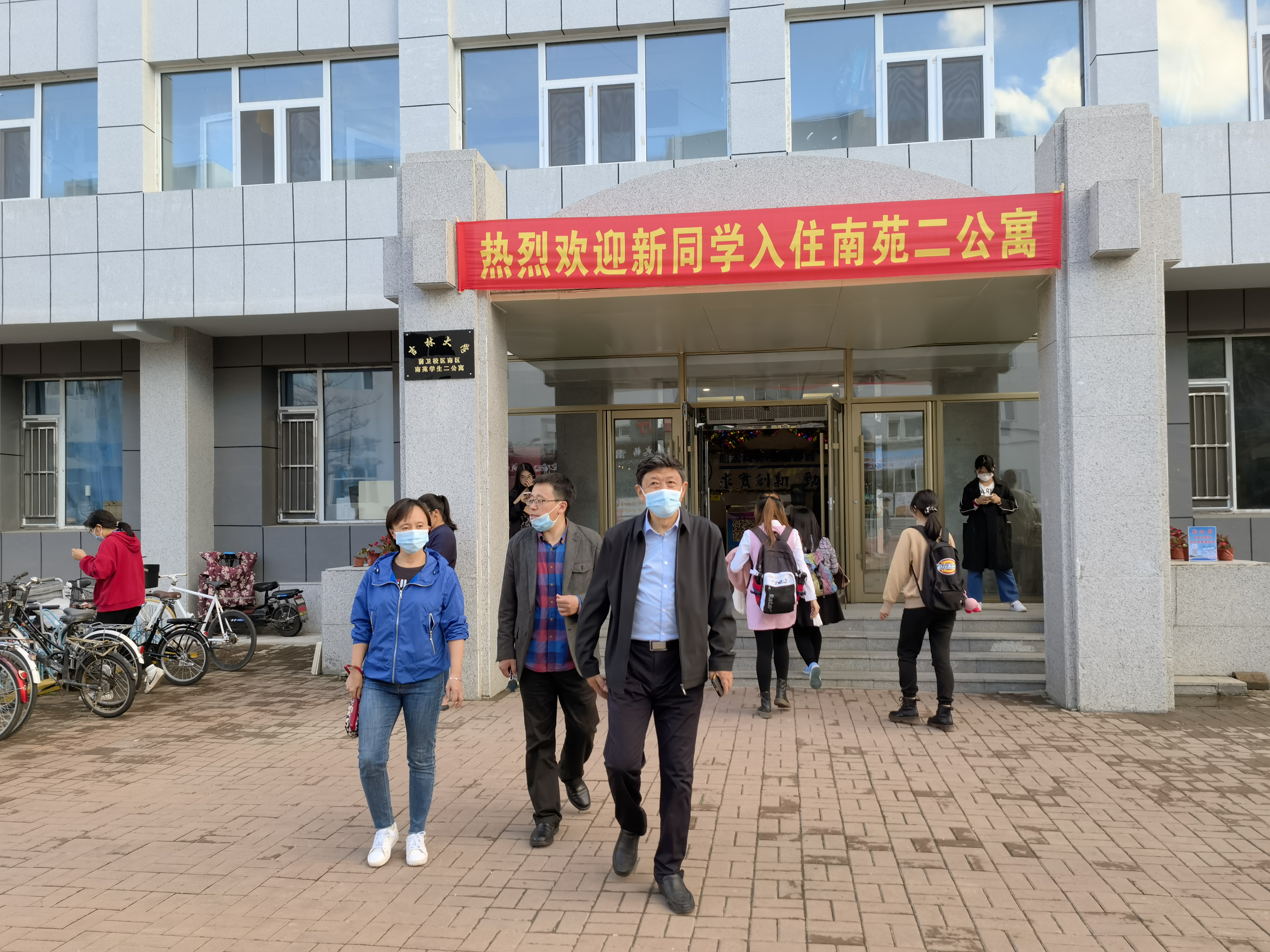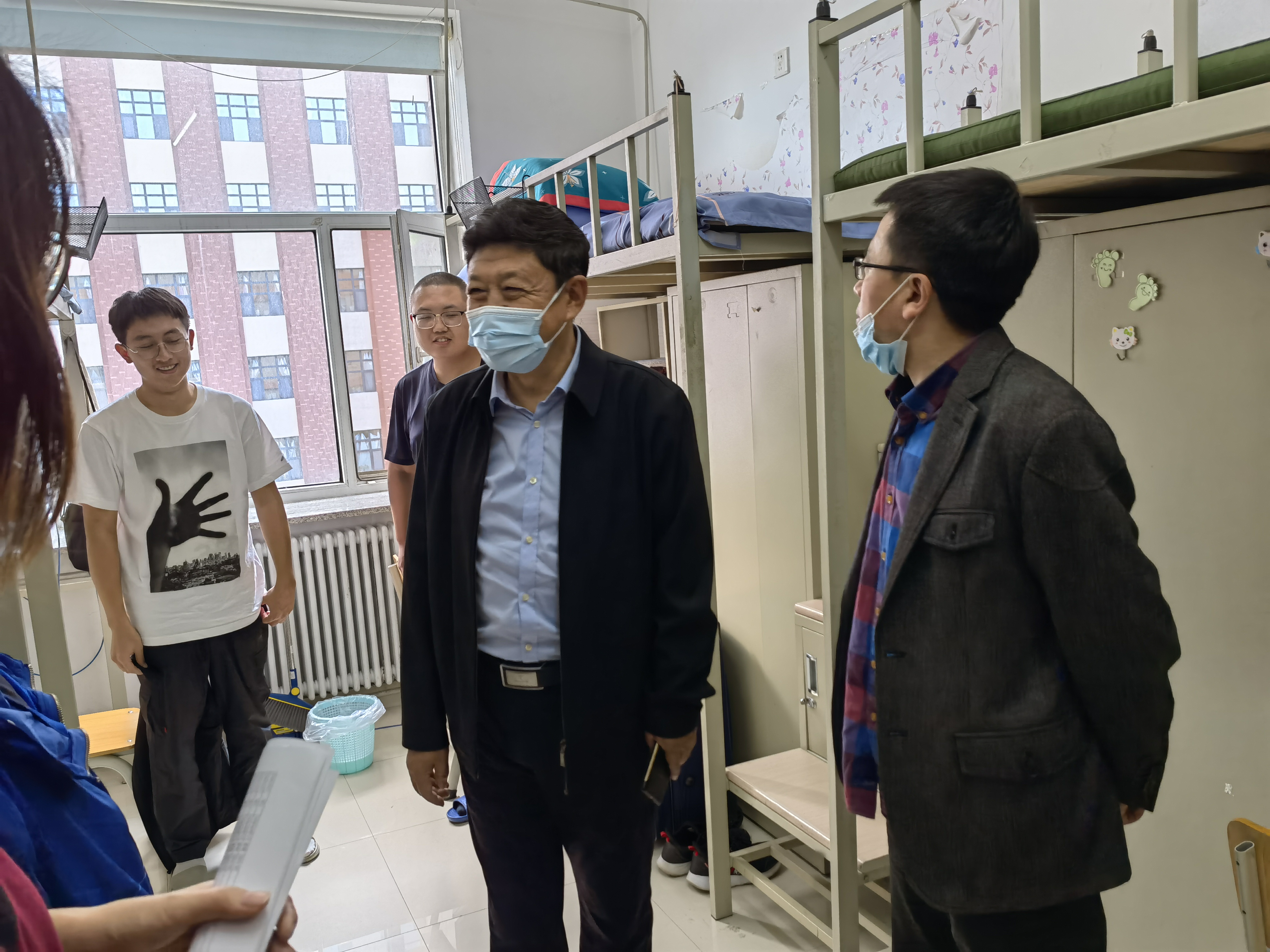 院长赵宾福教授、党委副书记侯建峰老师、副院长郑礼丽老师和本科生辅导员马嘉男老师一行人一同前往北苑学生二公寓和南苑学生二公寓,走访看望了2021级本科新生。