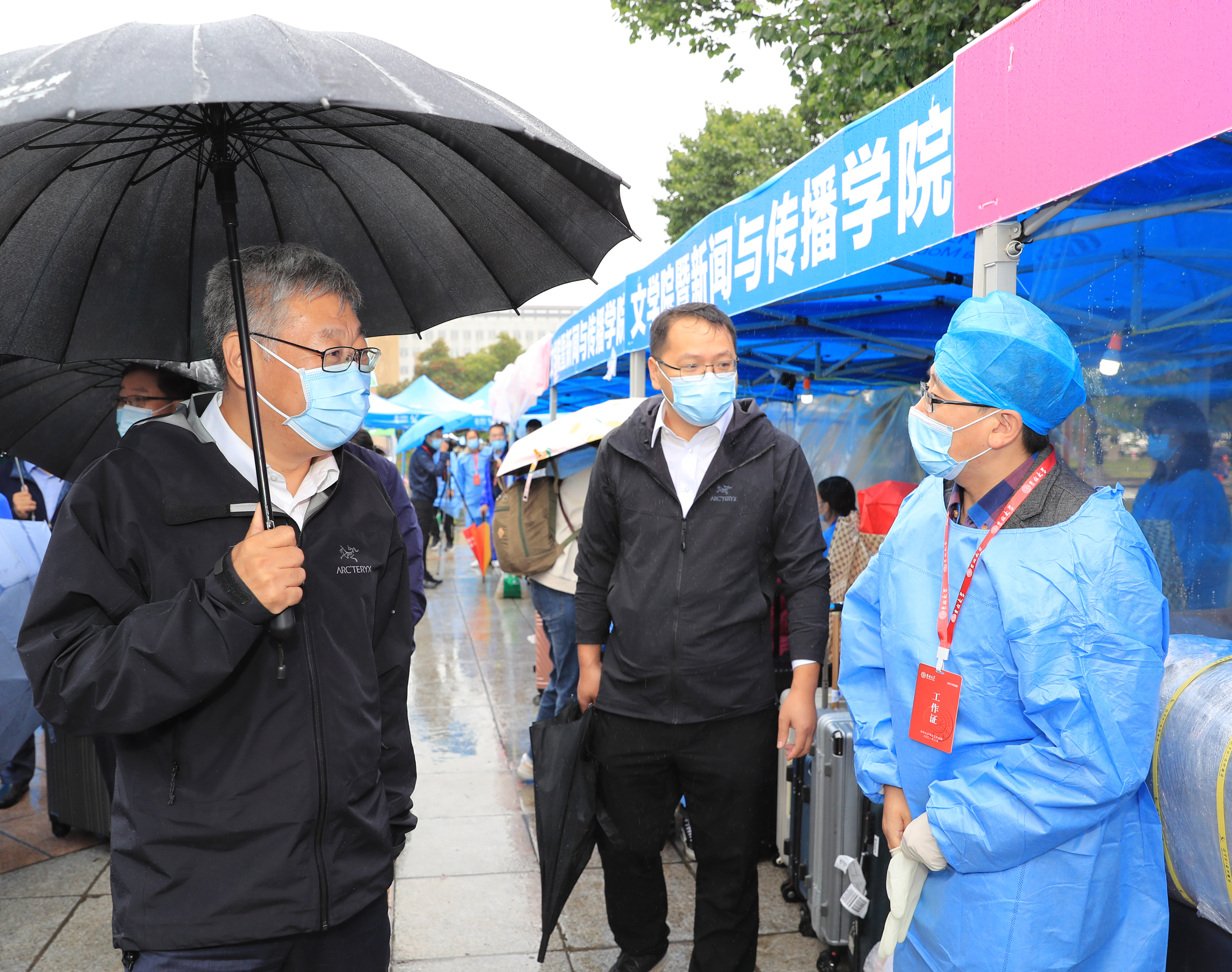 当日下午,学校领导一行莅临迎新现场视察并指导迎新工作。其间,领导们与a片欧美