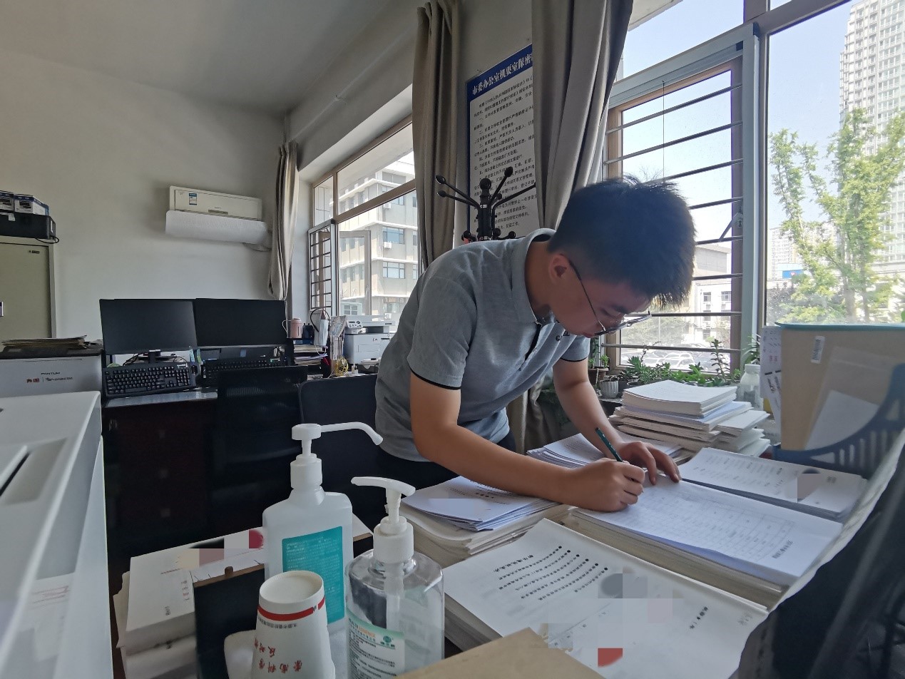 8月2日至今,他被调至市委办文电管理科进行实践。面对陌生的环境和繁多的工作,市委和文电管理科的领导前辈给予他最大限度的关怀和照顾。他的工作主要有三大部分,一是给太原市各区、县及市直单位报送至市委的文件贴卡入档;二是整理市委领导同志的参考书籍;三是给各个科室递送文件档案。虽然工作的强度不大,但是这段难忘的经历却是他迈向社会的第一步,具有弥足珍贵的意义。
