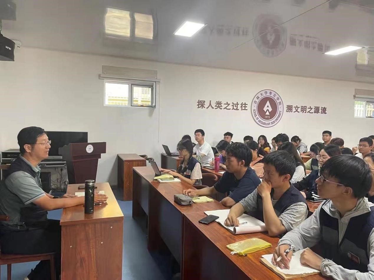 考古专业有着光荣的传统,红色基因始终传承于日常考古学习和田野考古实习的“教、导、考”三大环节之中。如今同学们来到了田野考古实践基地,要明白田野考古实习的目的在于让大家通过实践锻炼,学会学习、学会调查、学会沟通、学会担当,成为具备专业素养的考古新青年。在讲课最后,段老师寄语同学们,要想成为卓越的人才,就需要不断提升自己的思想理论水平和人文道德修养,从小事做起,从细节做起,不忘初心、砥砺前行。并期待大家能够用自己的实际行动为建设“中国特色、中国风格、中国气派”的考古学做出自己的贡献!