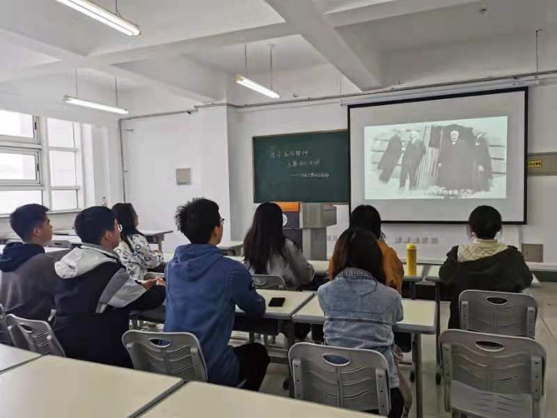 首先同学们通过观看视频《五四记忆》,深刻感怀新民主主义革命时期的五四精神。紧接着就视频的内容进行了思考与讨论,期间同学们反响热烈,发言积极,纷纷表达自己的看法与观点。然后由主持人向同学们总结展示五四精神的重要精髓,同时明确当代青年学子的自身站位。这段对话令人深受其启发,同学们在最后纷纷表达了对传承和发扬五四精神使命的坚定决心。