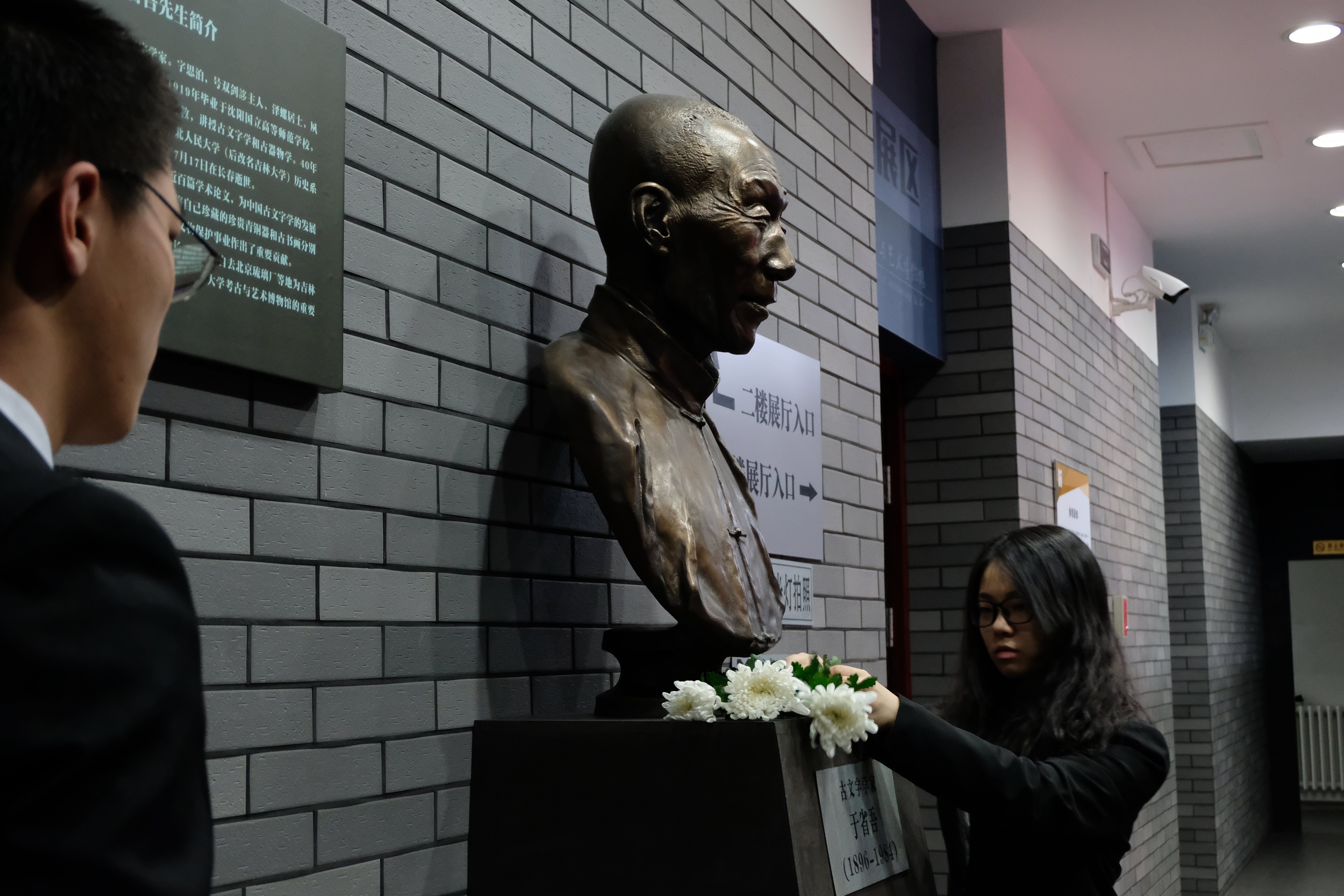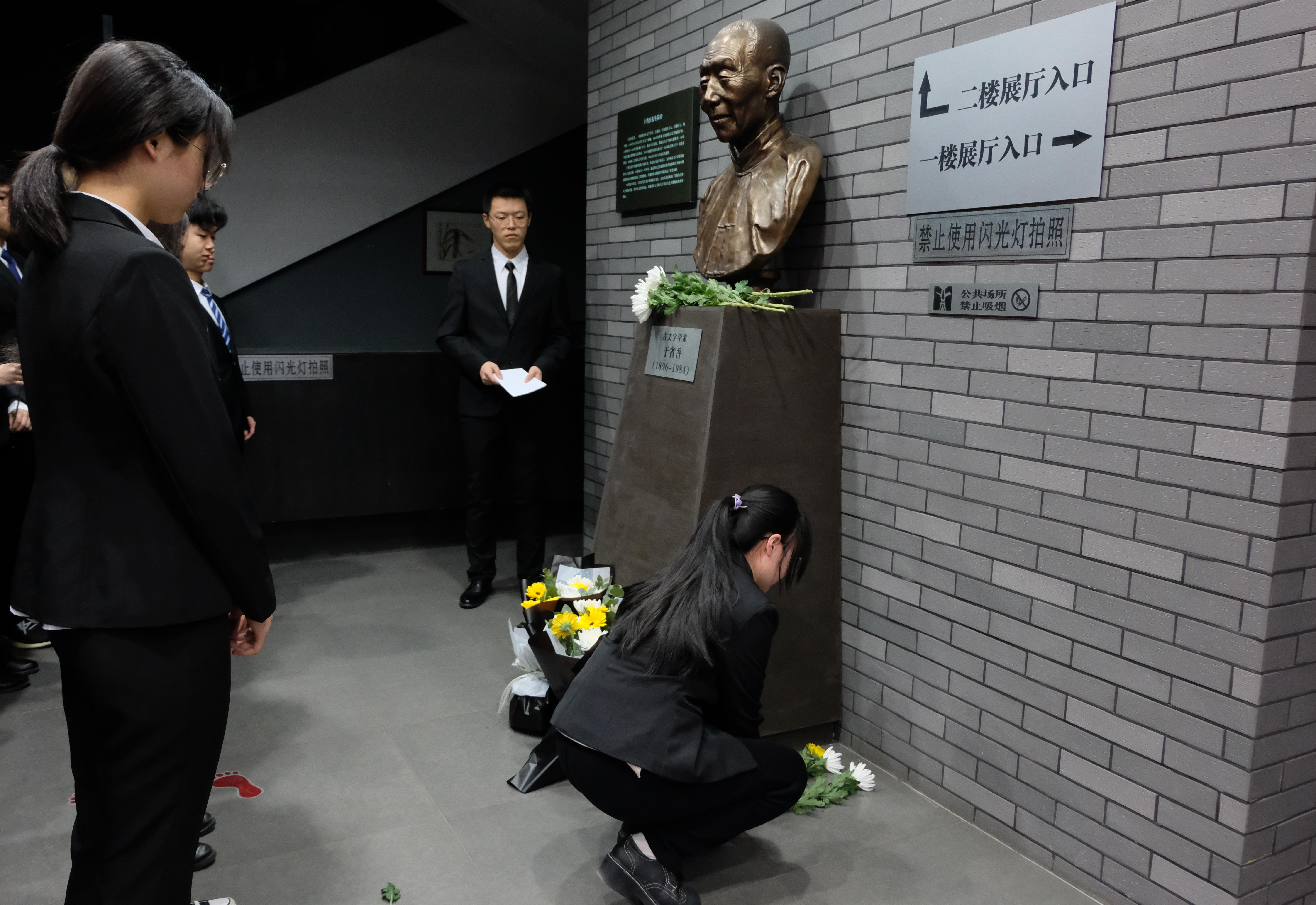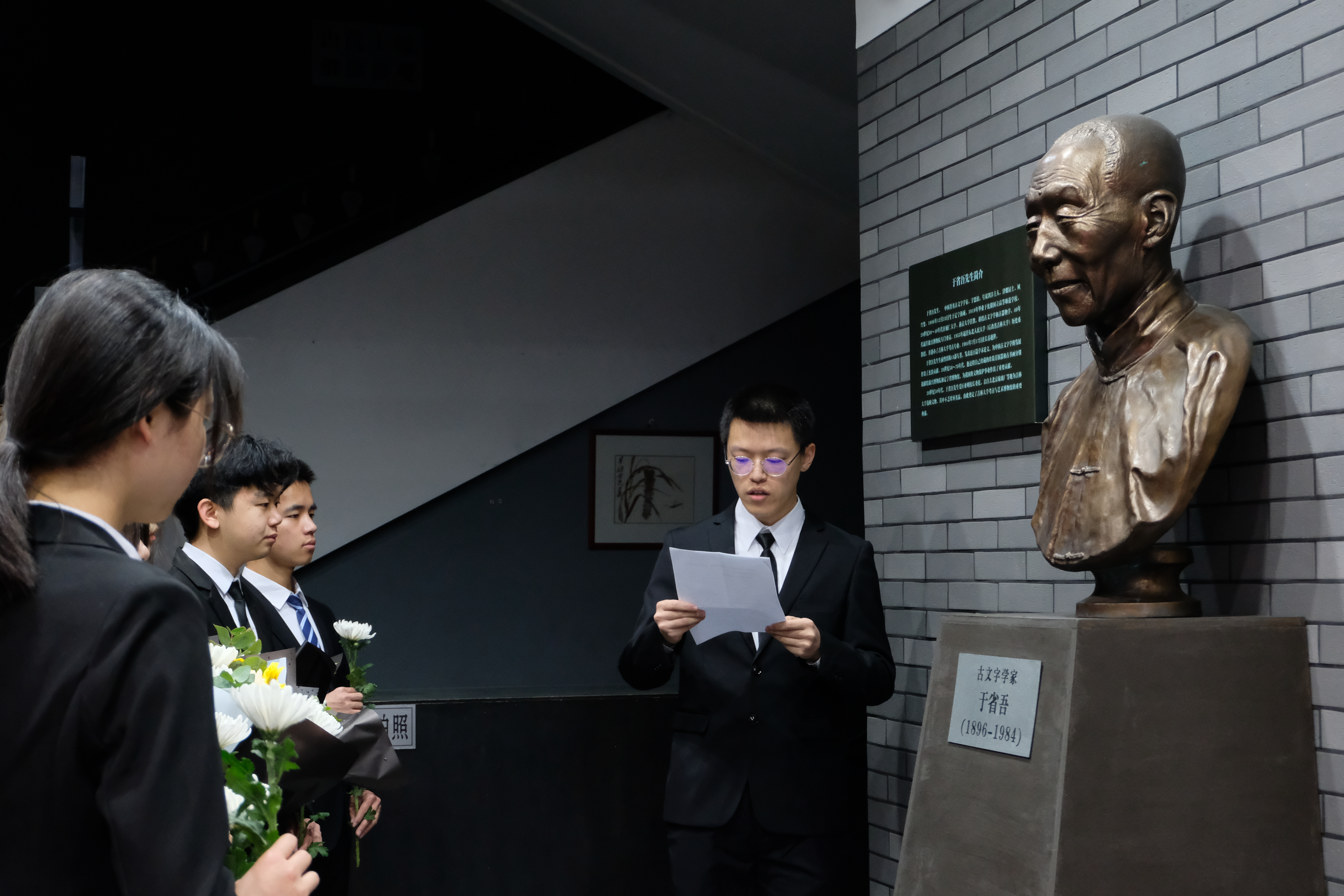 考古与艺术博物馆内于省吾先生雕像前举办清明节追忆先贤活动,传承先贤精神,与党同心同行。活动由学生会负责人田玉峰、高千娇主持,部分本科学生代表参与。