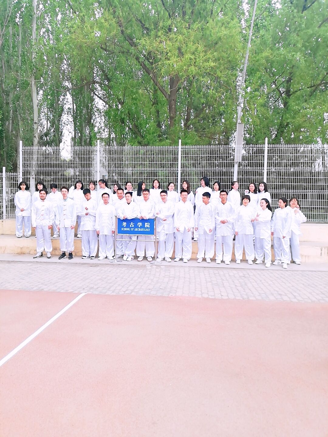 选手们身着白色太极服,整齐划一地列阵入场,向看台上的裁判与观众行抱拳礼,高喊出“古史长往,溯流四方。长浪有尽,少年无双”的口号。随后,音乐响起,运动员们铭记平日训练时教练的指导和自己的心得体会,依循节奏、彼此配合着打出一招一式,圆满完成了比赛。所有参赛组结束比赛后,集中在主席台下,聆听了裁判员老师对本次比赛的评点与总结。最后,大家不顾参赛的辛苦,进行了集体合练,为将于不久后召开的运动会上的表演作准备。