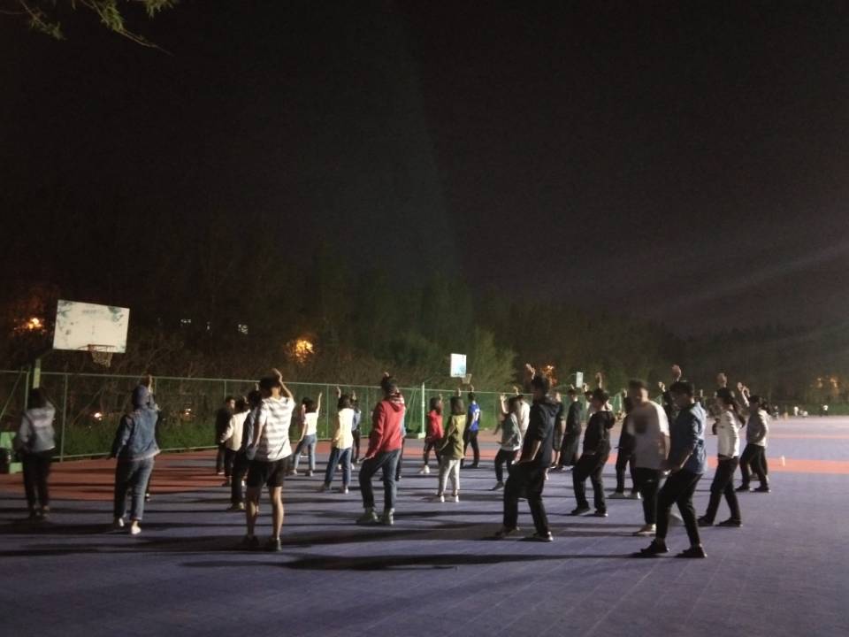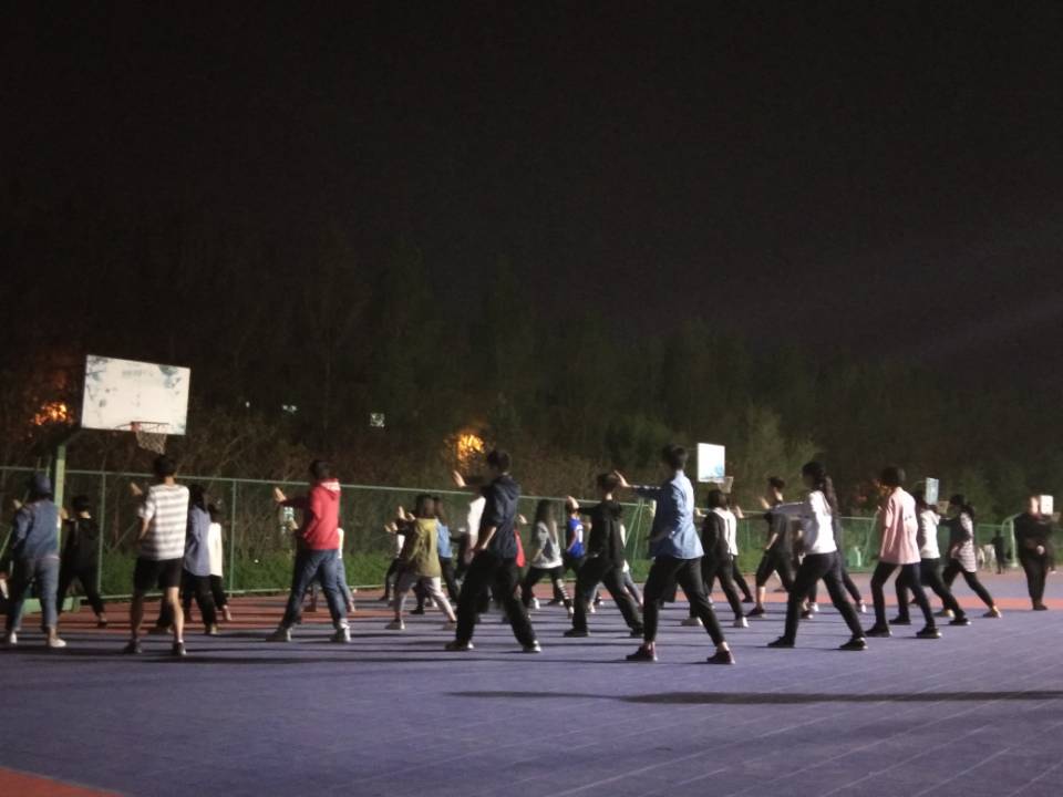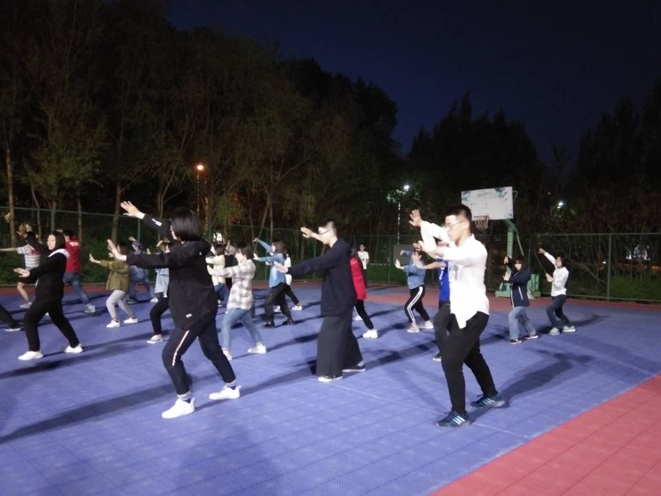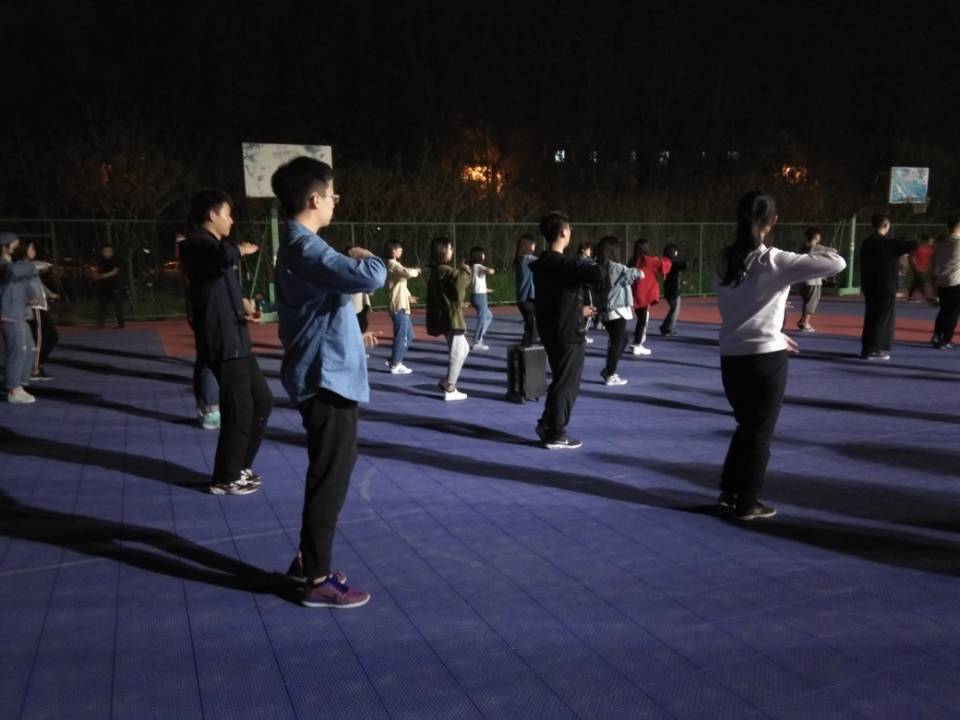 于篮球场开展了运动会的太极拳团体项目的训练活动,活动的主要内容是对参加太极拳团体项目的同学配乐进行训练,并进行细节之处的纠正。2018级31位同学、2017级部分师兄师姐参加。