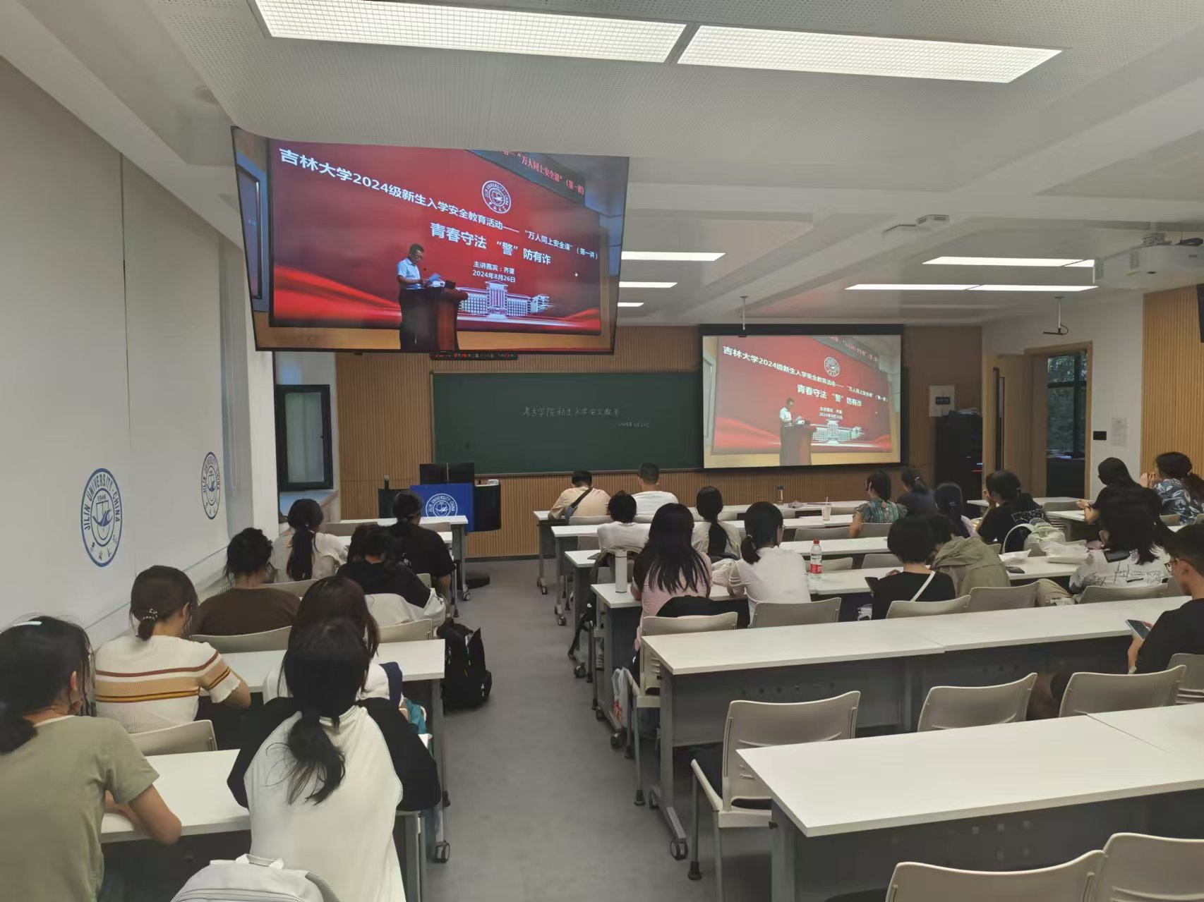 2024级全体本科生在敬信楼D104和D106教室观看直播,共同接受这份安全知识的洗礼。