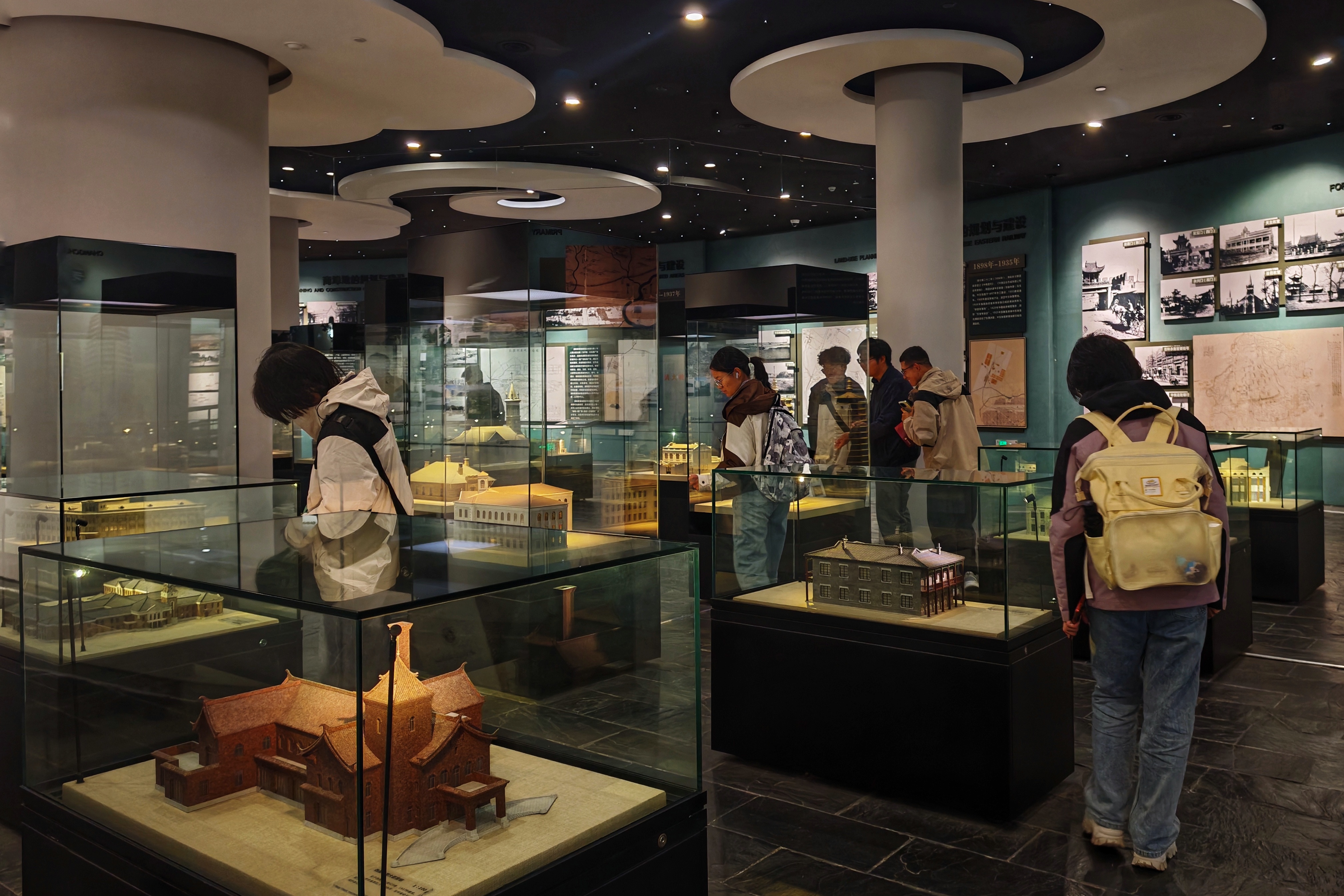 离开长春博物馆后,绕行“城市之花”会展中心,同学们进入长春规划展览馆进行参观。三层展厅层层递进,从过去、现在、未来,将北国春城的风貌渐次展开。移步换景,现代化的空间设计充满青春朝气,立体而具象地展现了长春古韵新妍的城市特征。铁路交通、电影文化、雕塑成就、建筑之林……北国之春,长春应占三分。