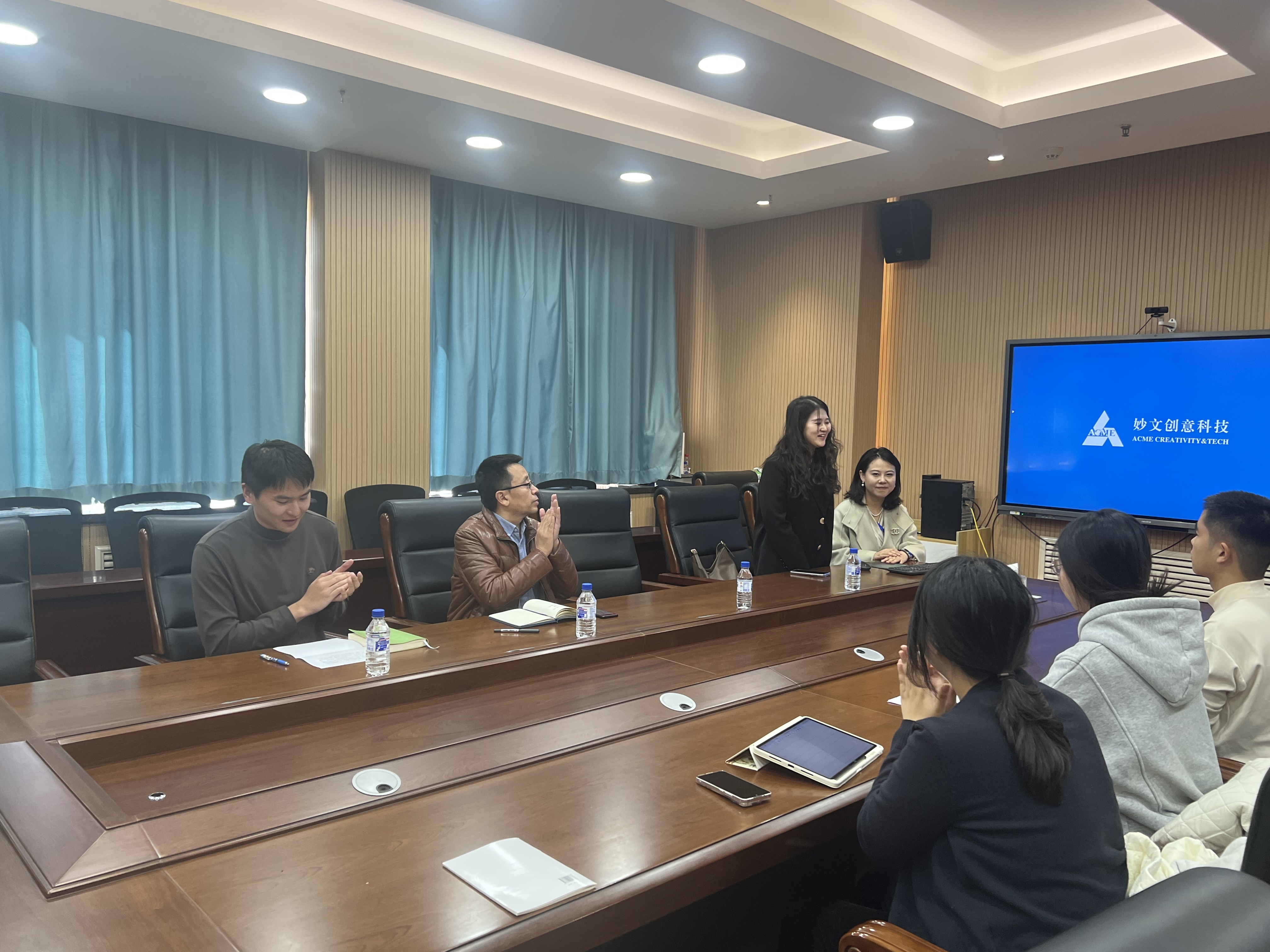 2021届毕业生朱冠儒分享自己在妙文国际的工作及感想。最后,两位老师与毕业生进行了深度交流,细致地解答了毕业生们所关心的如工作岗位、个人发展等方面的问题。
