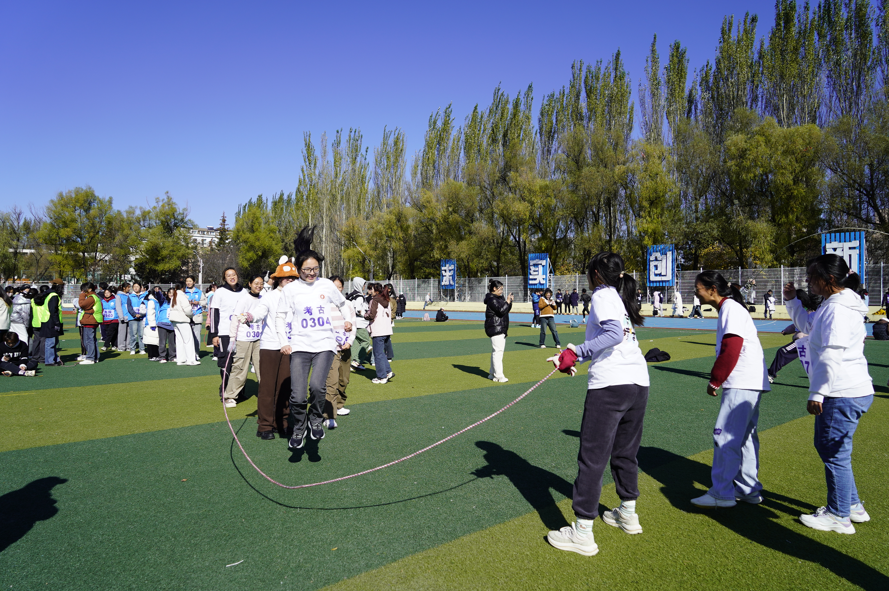 团体项目方面,同学们积极参与到了三分钟10人8字跳绳项目中。赛场上,她们团结自信,彰显了a片欧美
