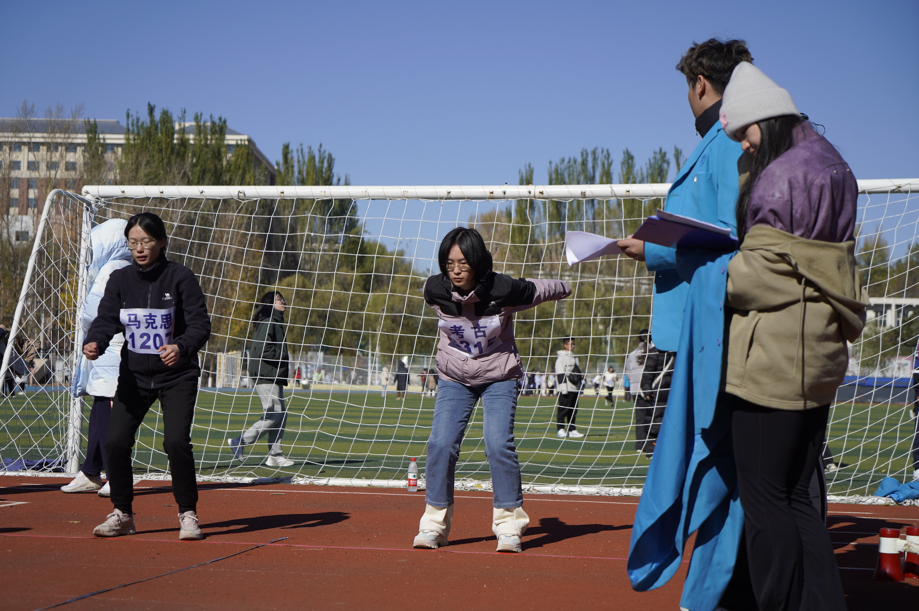 参加立定跳远。摆臂幅度、起跳时机,每一个运动细节的准确完成,都彰显出运动员的从容沉着。