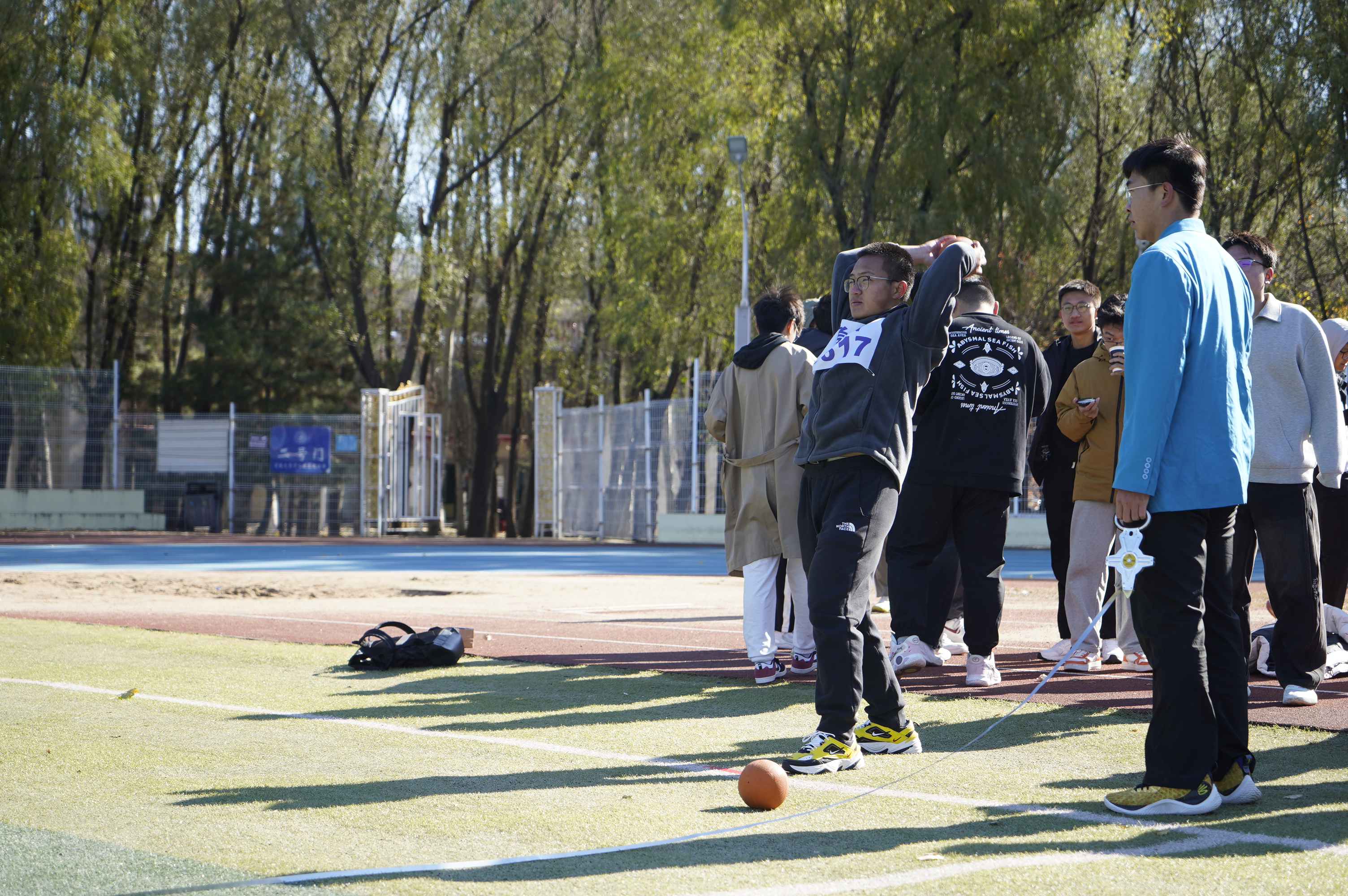 ,参加了前抛实心球项目。他们屏息凝视,腰身弯曲舒展,实心球划破天空,飞向远方。