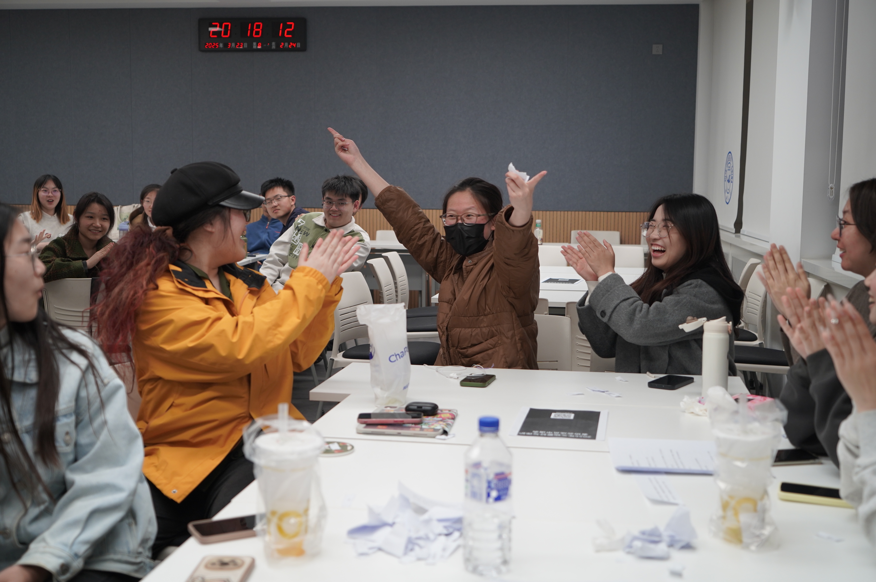 在许琼方的介绍后,大家按照所坐位置分三组进行游戏,协会成员们提前为大家设计好了吉大考古专属版“谁是卧底”词语和“海龟汤”,每组词语都采撷了大家校园生活和专业学习的吉光片羽。在一轮轮猜测推理中,分组围坐的大家从最初的拘束到后来的开怀大笑,尽情享受游戏带来的快乐;掌声与欢笑叠出,将教室内的气氛推向了高潮。