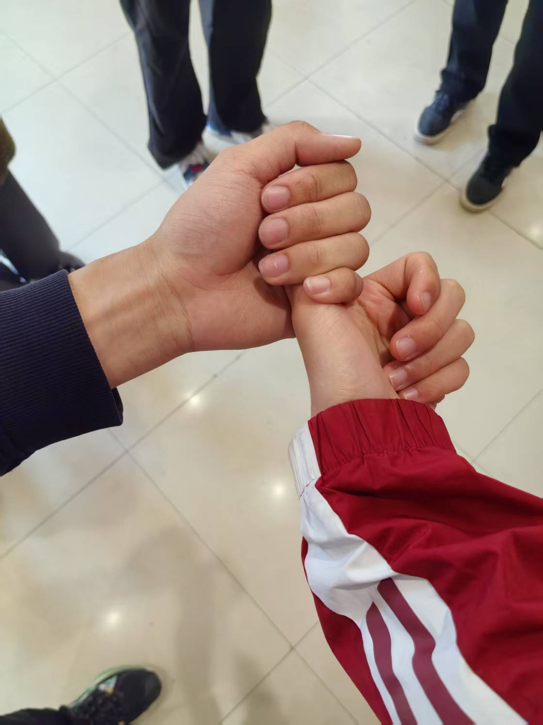 活动开始,同学们自觉围成大圈坐在一起,双手紧握共同“签署”保密约定,在欢笑声中开始本次班会。按照人数分组后,同学们向同组成员介绍自己的昵称及手势,并尝试测量同伴的心情温度。在这个环节中,同学们既坦诚分享了自己的心情,也学会了体察同伴的感受,对彼此的理解让同窗情谊更加温暖深厚。
